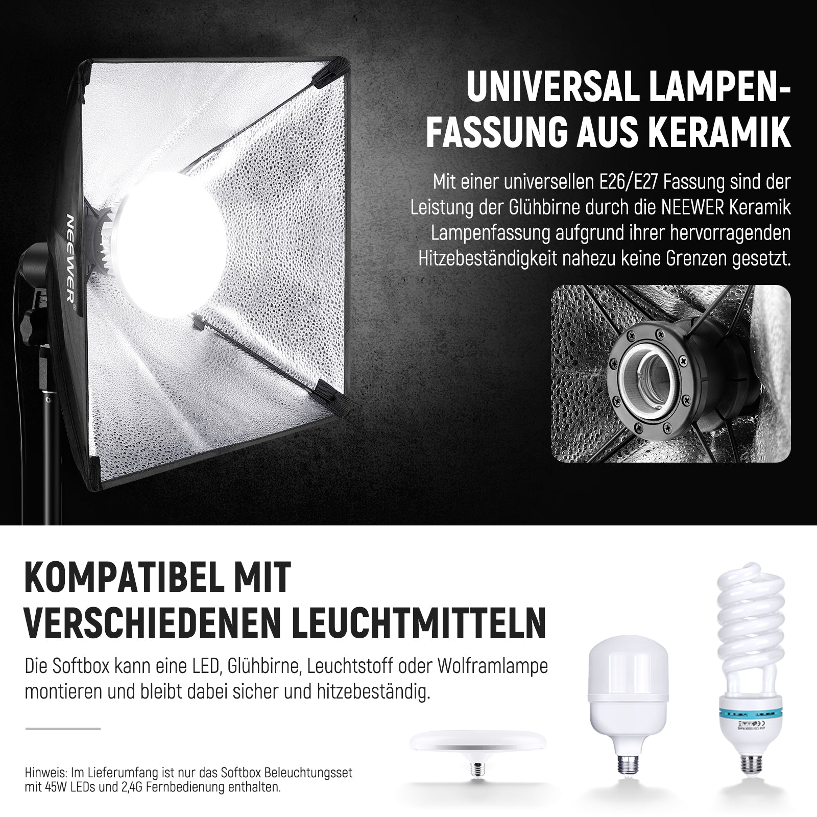 • Softbox-Maße: 24"×24"/60×60 cm