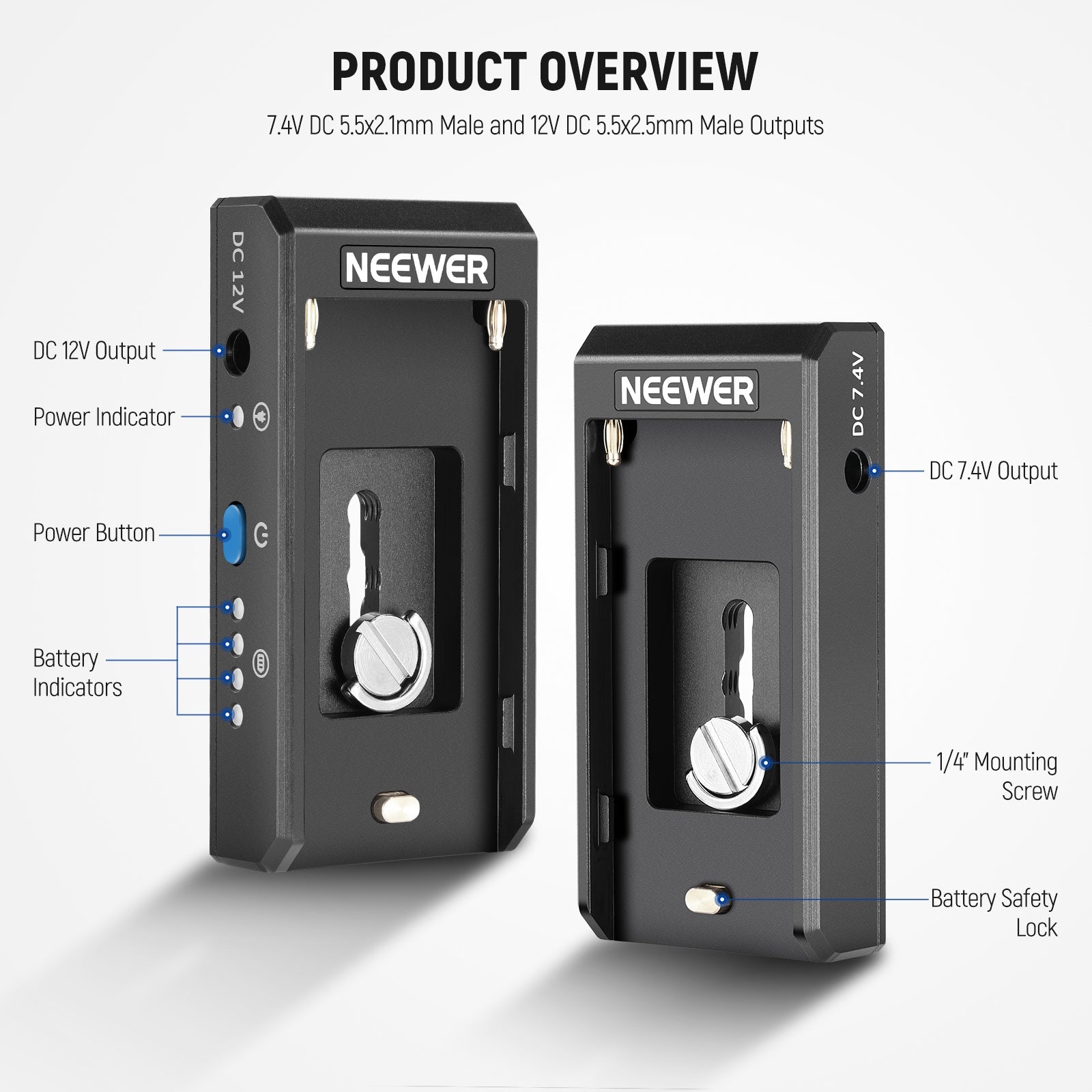 - 【Breite Kompatibilität】 Die NEEWER PS004E Akku-Adapterplatte ist mit allen Sony NP-F-Akkus kompatibel, um Ihre DSLR-Kamera, spiegellose Kamera und andere Fotoausrüstung mit Akkustrom zu versorgen