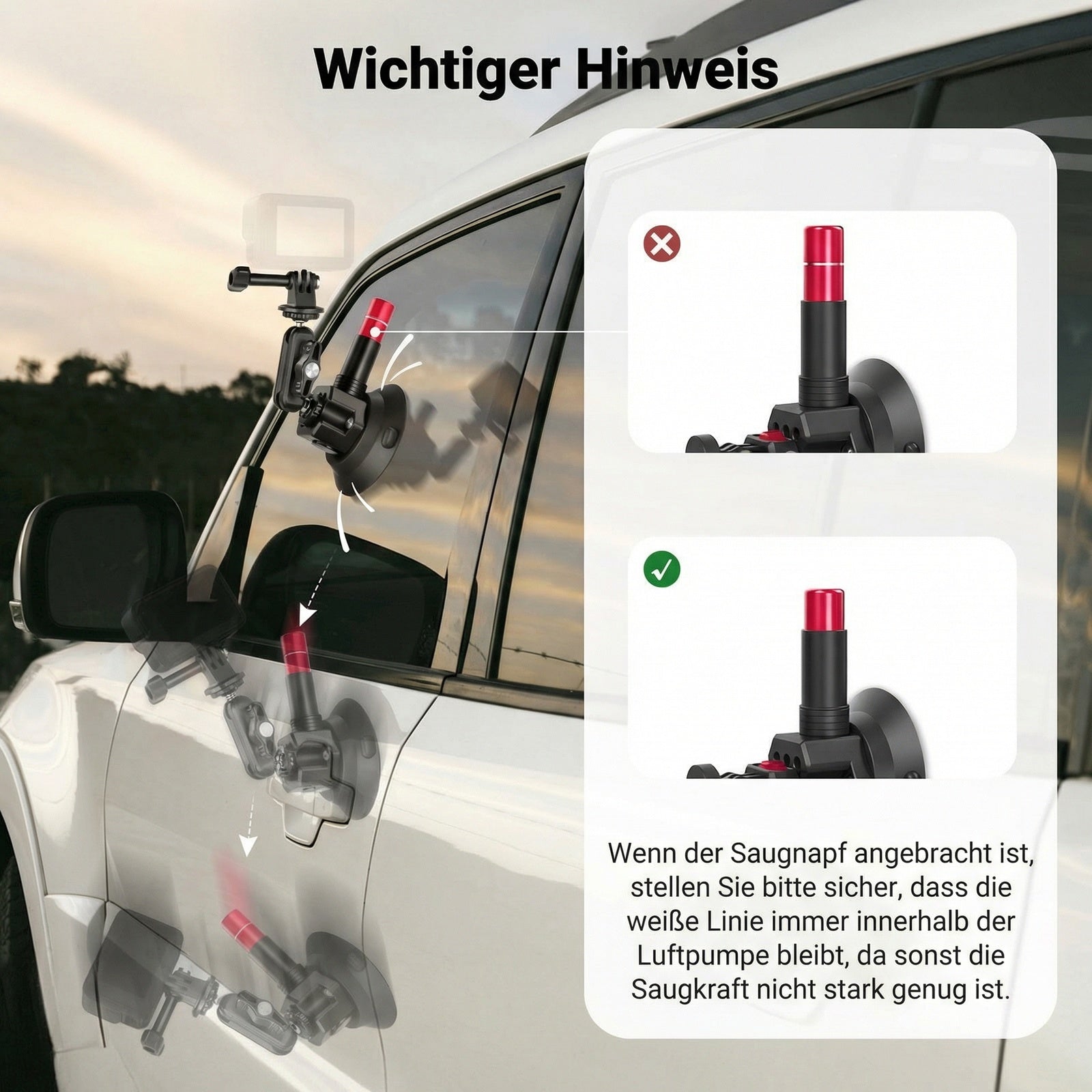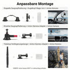 - 【Dreifacher Saugnapf Autohalterungssatz】 Erfassen Sie beeindruckende POV Aufnahmen (Point of View) aus einzigartigen Blickwinkeln wie der Motorhaube, der Windschutzscheibe innen/außen, dem Armaturenbrett oder der Fahrzeugseite. Der Saugnapf-Kamerahalter befestigt Ihre Action Kamera sicher mit drei leistungsstarken Saugnäpfen und ermöglicht eine flexible Positionierung mit Verlängerungsstangen und einem magischen Kugelkopfarm für Videoaufnahmen, mit einem Sicherheitsband für zusätzliche Sicherheit. Hinweis zur Verwendung bei Geschwindigkeiten unter 80 km/h, um versehentliche Stürze zu vermeiden