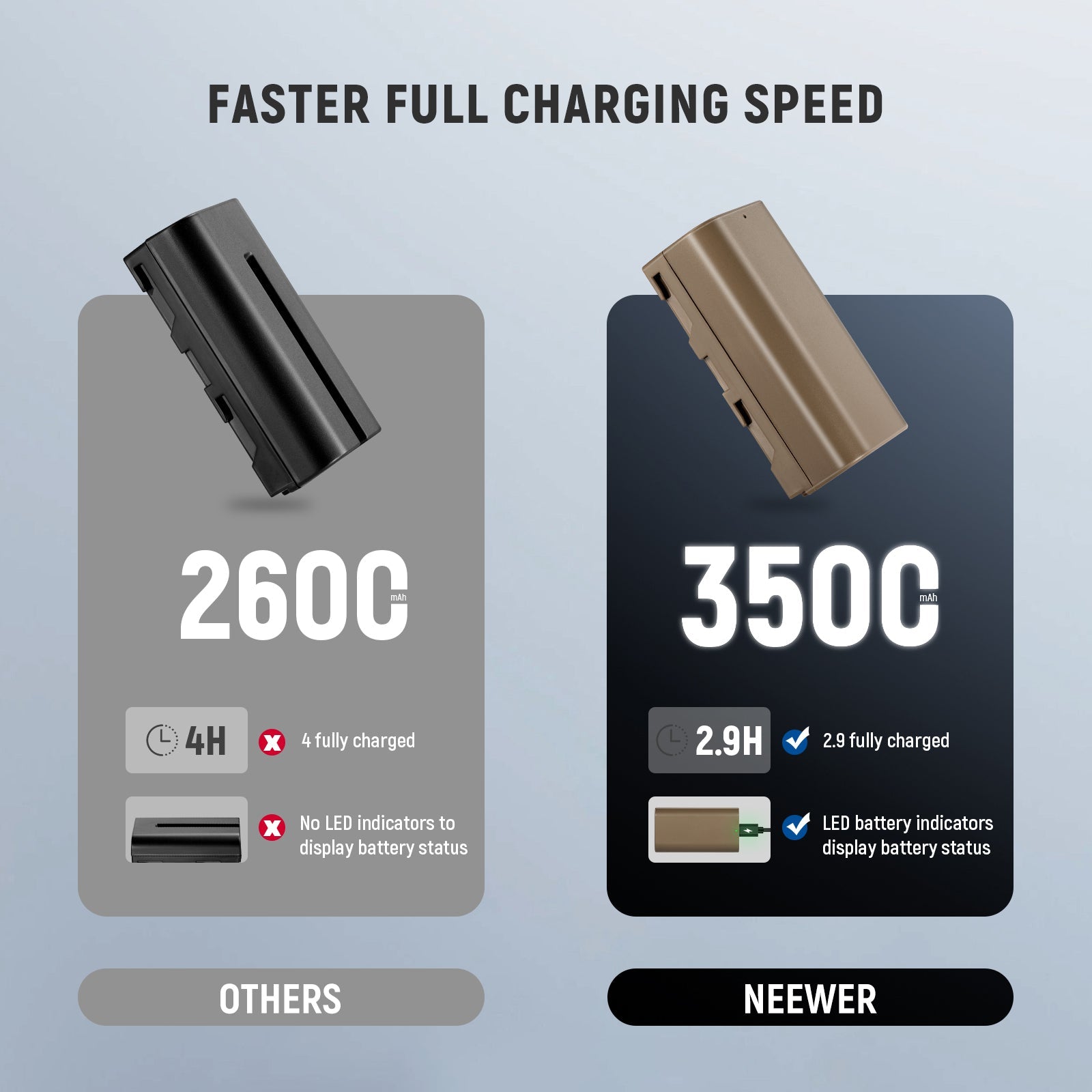 - 【Kompatibel mit verschiedenen Geräten】Ein Ersatz für Akkus der Sony NP-F Serie, einschließlich NP-F550, NP-F570, NP-F750, NP-F770, NP-F960, NP-F970, NP-F975. Kompatibel mit Sony CCD-RV CCD-SC CCD-TR CCD-TRT CCD-TRV CVX DSR DCR GV HDR HVL HVR MPK MVC PBD PLM Serie Kameras und Camcordern, NEEWER LED Flächenleuchten, Ringlichtern und Feldmonitoren