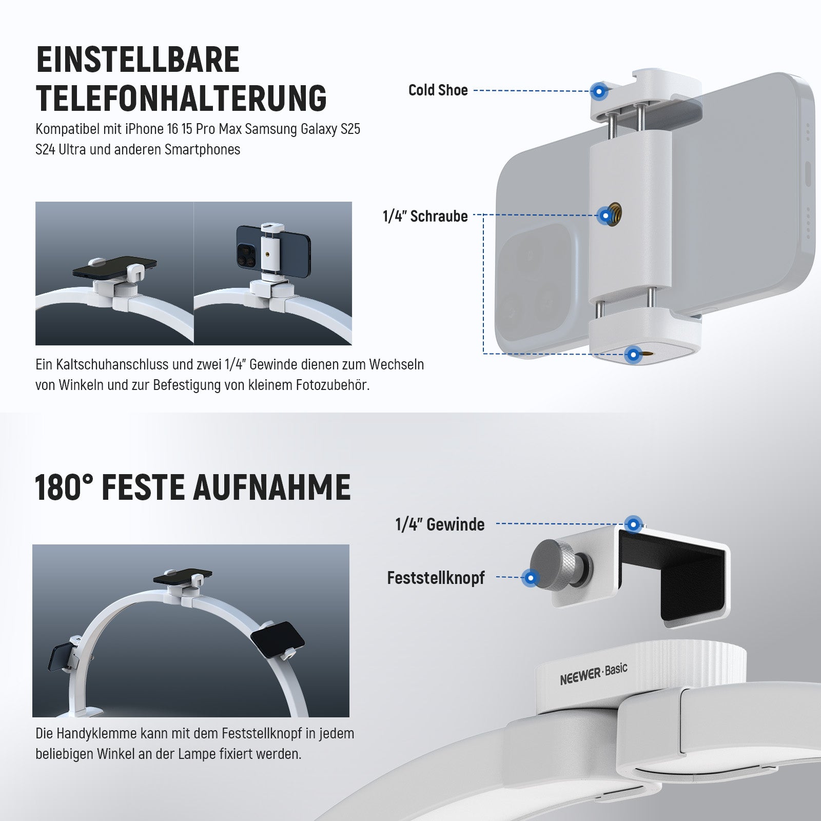 NEEWER Beauty- und Kosmetiklampen bieten gleichmäßiges, schattenfreies Licht für präzise Hautpflege- und Schönheitsbehandlungen. Für den professionellen Einsatz entwickelt, helfen sie Kosmetikerinnen, Esthetikerinnen und Make-up-Artists, Hautstruktur, Farbton und feine Details bei Gesichtsbehandlungen, Wimpernarbeiten, Make-up oder kosmetischen Verfahren genau zu erkennen.