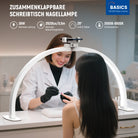 - 29“ Große & faltbare Tischlampe mit schwerem Sockel- Mit einem beeindruckend großen Durchmesser von 29,1“ (738mm) bietet diese Tischbogenlampe eine breite Ausleuchtung, die Ihren Manikürebereich vollständig abdeckt. Sie verfügt über zwei schwere Metallfüße mit rutschfesten Schaumstoffpads, die die Lampe fest an ihrem Platz halten und eine stabile Beleuchtung ohne Wackeln gewährleisten. Trotz ihrer Größe lässt sie sich in der Mitte zusammenklappen, so dass sie auch in engen Räumen Platz findet