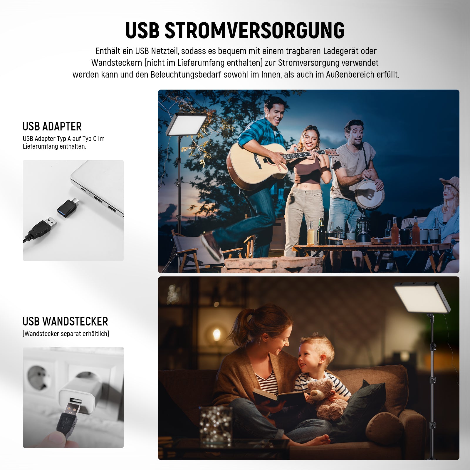 - Integriertes Strom und Steuerkabel- Das schlanke LED Fotolicht mit einer Dicke von 2,8cm ist kompakt und leicht zu transportieren. Jedes LED Dauerlicht ist mit einem 2 langen Stromkabel ausgestattet, das mit einem Lichtregler für eine nahtlose Handhabung integriert ist. Mit einem 5V/2A USB A Eingang kann das Licht über einen 5V/2A USB Wandadapter, ein tragbares Ladegerät, einen Computer oder über den mitgelieferten USB A zu USB C Adapter von einem Laptop mit Strom versorgt werden
