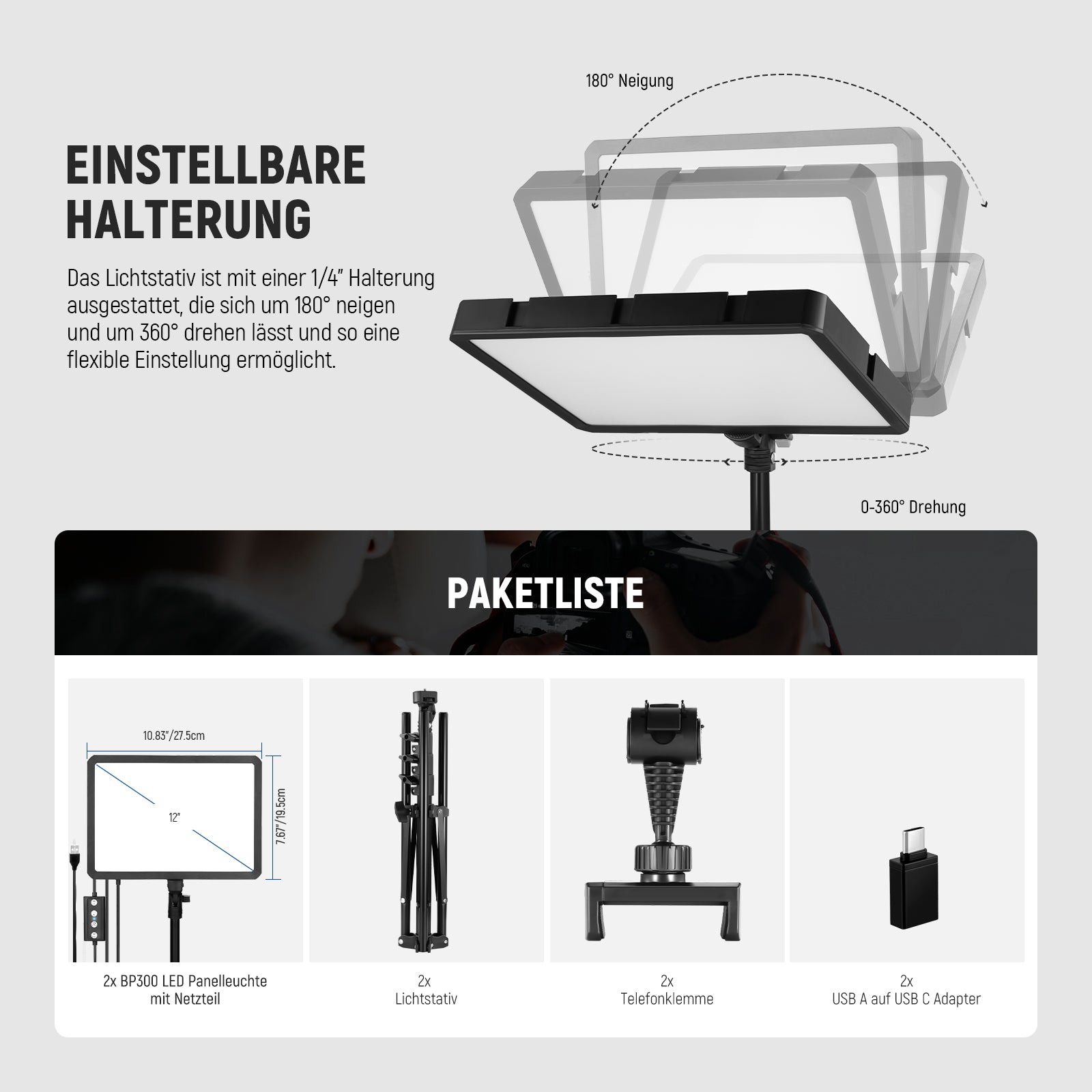 - 1 x BP300 Bi Color LED Videopanelleuchte