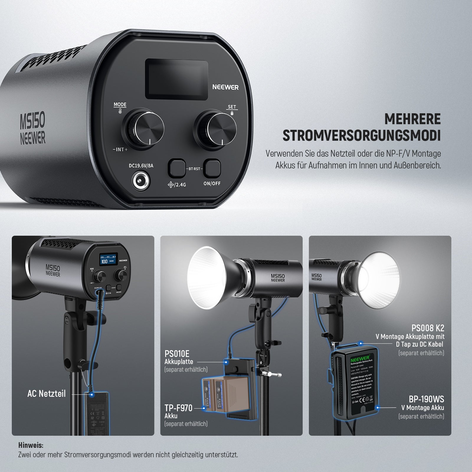 - Entdecken Sie weitere NEEWER Produkte- Beachten Sie auch unsere NS55P/NS90P Parabolische Softbox mit Schnellwechsel, die Laternen Softbox NS20L/NS35L, den Gitter Beauty Dish LD55, das Spotlight Vorsatz Set LS-39, das luftgepolsterte Hochleistungs Lichtstativ ST-400AC und die Handausleger MS-240AC Stange, NC010 D Tap zum DC Kabel zur Stromversorgung. Kompatibel mit SmallRig VB99 VB50V NEEWER PS099E BP-95W BP-150WS BP-190WS BP-V47 BP-V95 V Montage Akkus