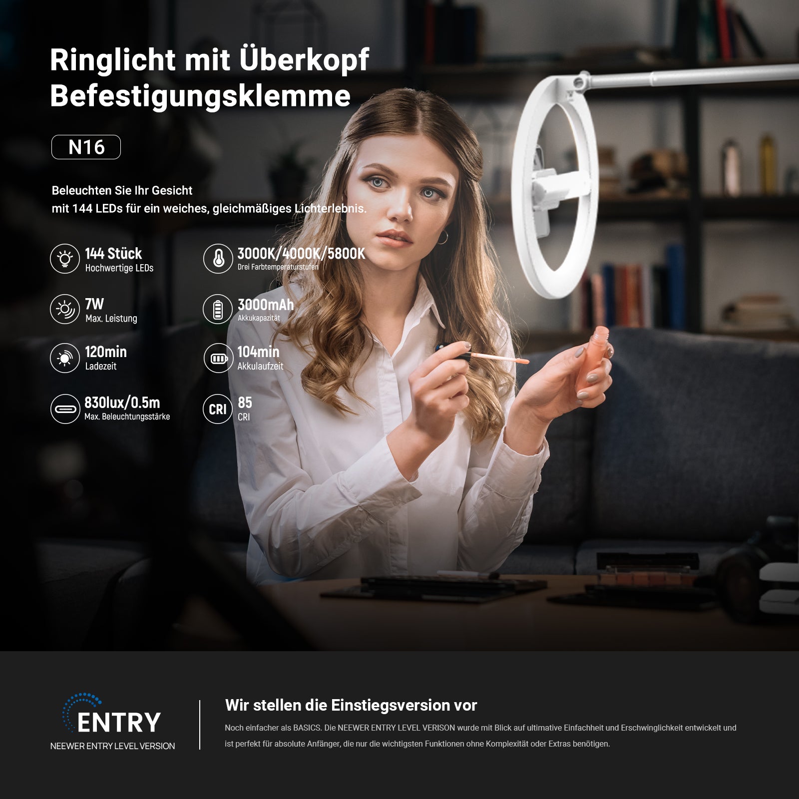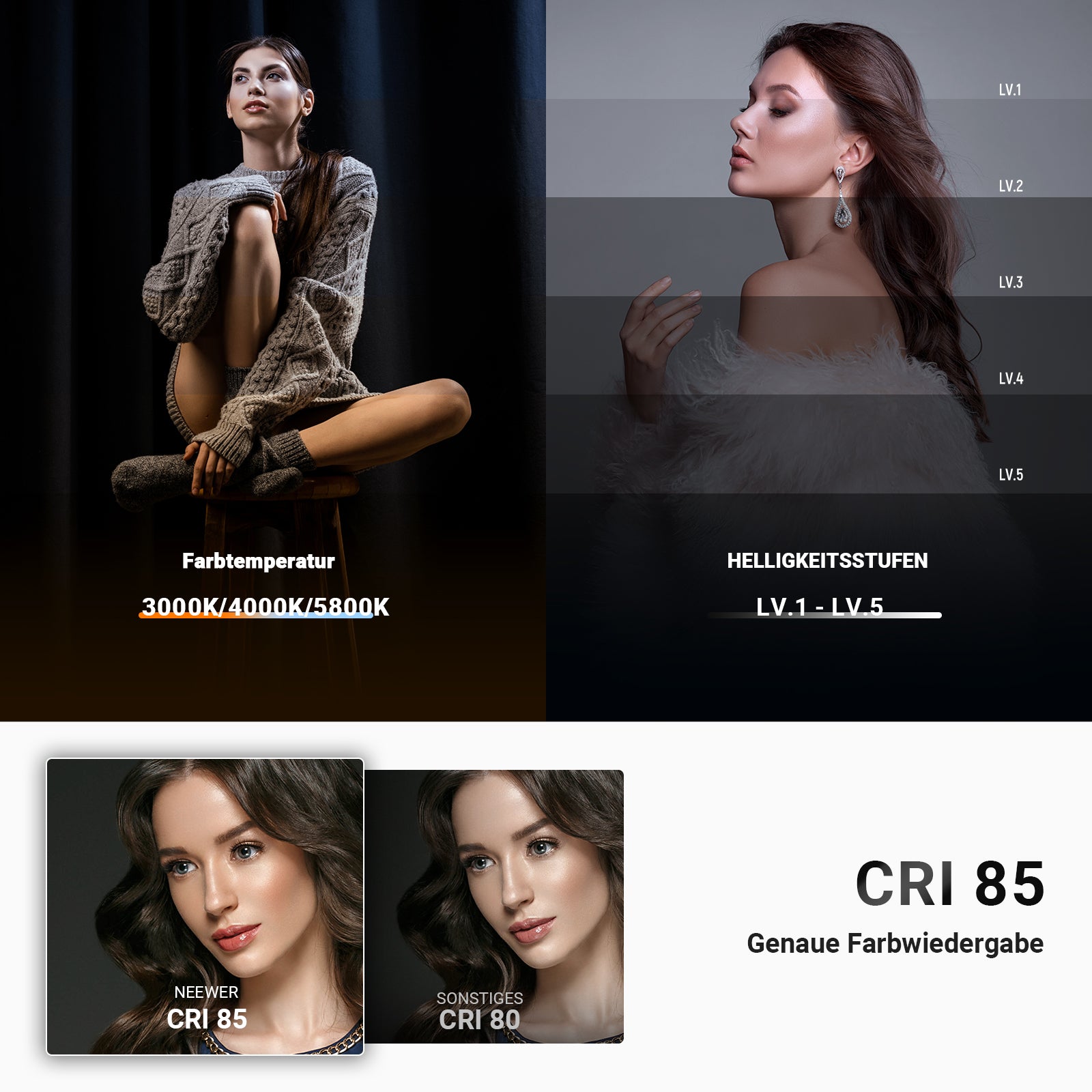 NEEWER LED-Schreibtischlampen bieten augenschonendes Licht für Arbeit, Lernen und den Alltag. Flimmerfreie Beleuchtung und einstellbare Helligkeit reduzieren die Augenbelastung bei Lesen, Schreiben, Computerarbeit und konzentrierter Schreibtischarbeit.