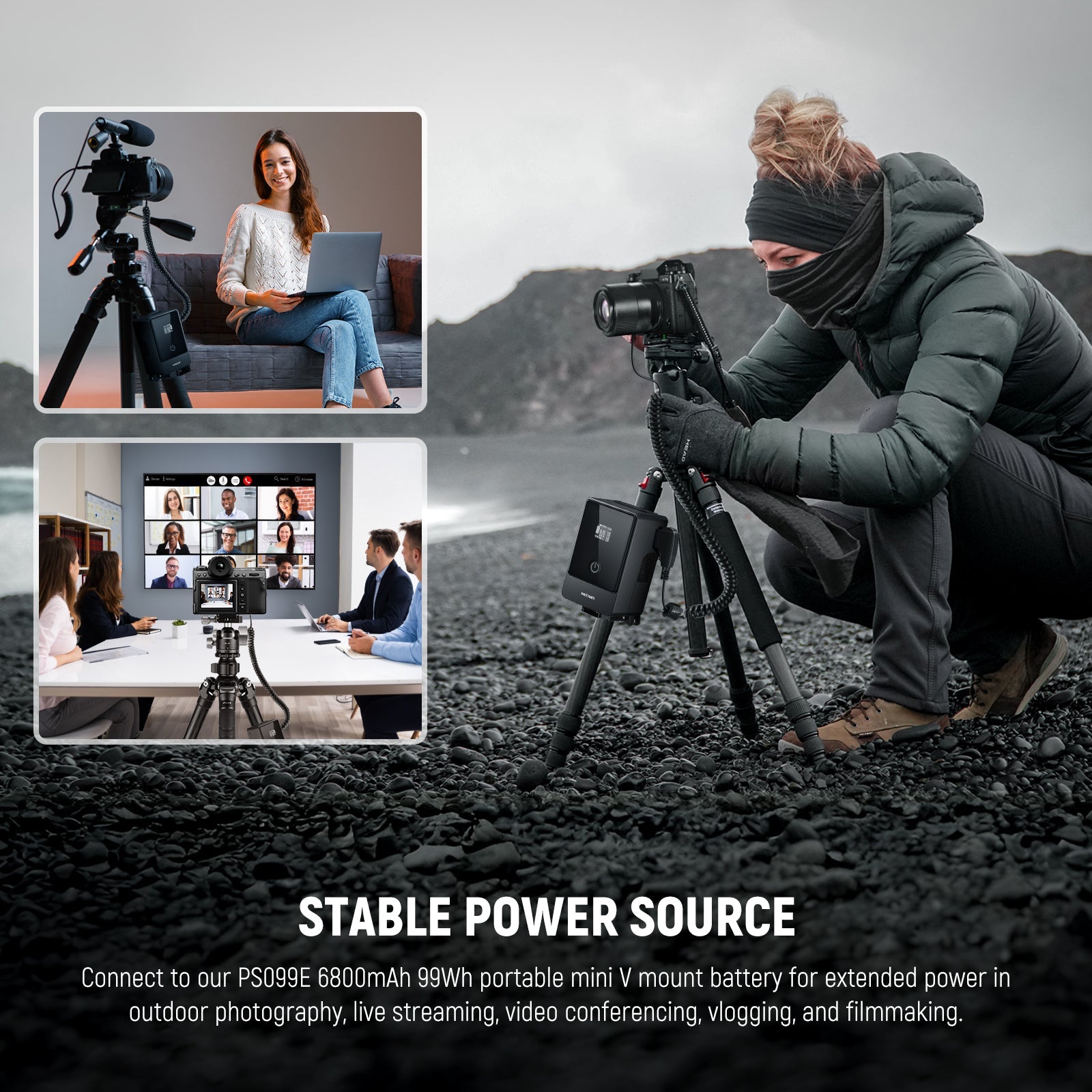 - Stable Power for Longer, Safer Footage- Verabschieden Sie sich von Kabelausfällen und sichern Sie Ihr kritisches Filmmaterial. Unser intelligenter Chip garantiert eine konstante und stabile Stromversorgung für Ihre Kreation. Schließen Sie unseren PS099E 6800mAh 99Wh tragbaren Mini V Mount Akku an, um eine längere Stromversorgung für Outdoor Fotografie, Live Streaming, Videokonferenzen, Vlogging und Filmemachen zu gewährleisten