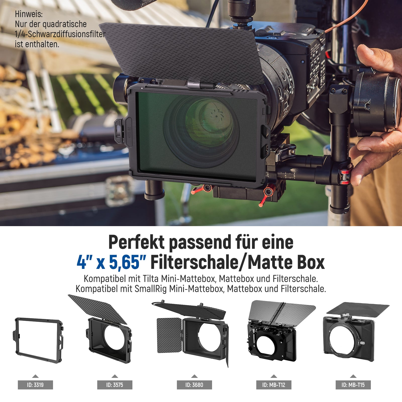 - 【4"x5,65" quadratischer Filter für Matte Box】 Der 4"x5,65" quadratische Filter ist kompatibel mit Tilta kompatibel mit SmallRig Matte Box und Mini Matte Box. Setzen Sie den Filter einfach auf eine Mattebox und platzieren Sie das gesamte Set vor Ihrem Kameraobjektiv, und erhalten Sie dann den verschwommenen Kinolook für professionelle Fotografie und Videografie