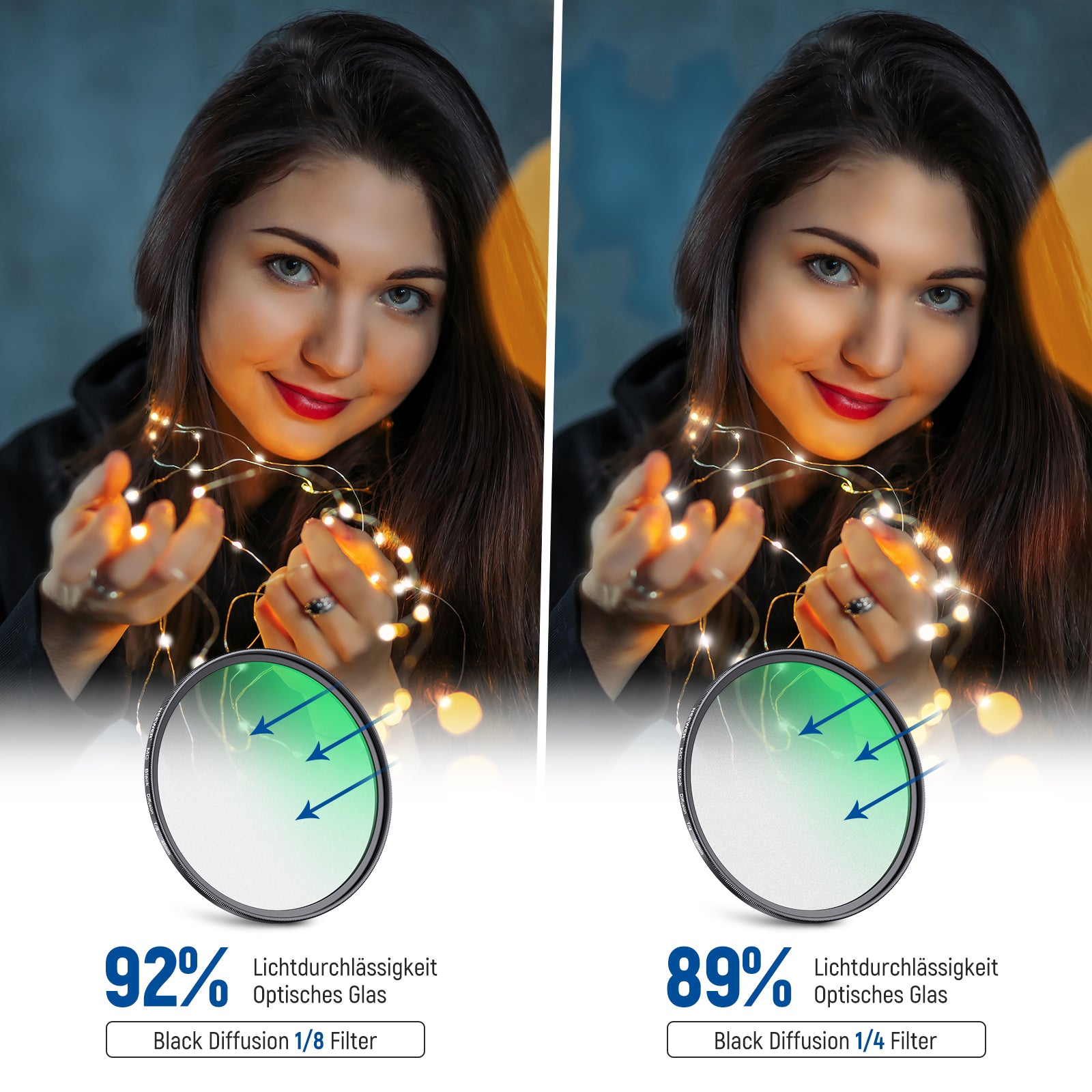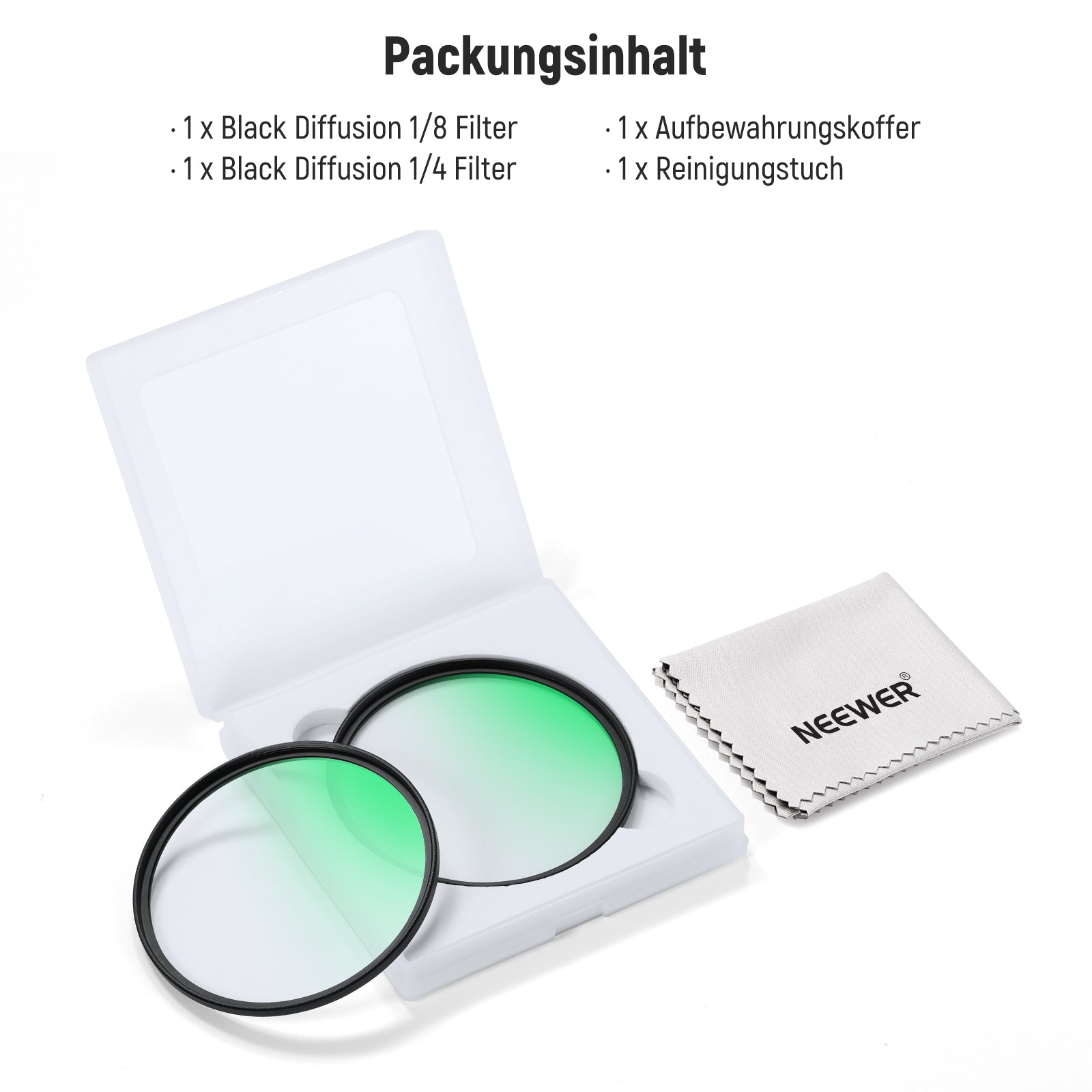 NEEWER 2 Pack 1/4 & 1/8 Black Diffusion Kameraobjektivfilter Set