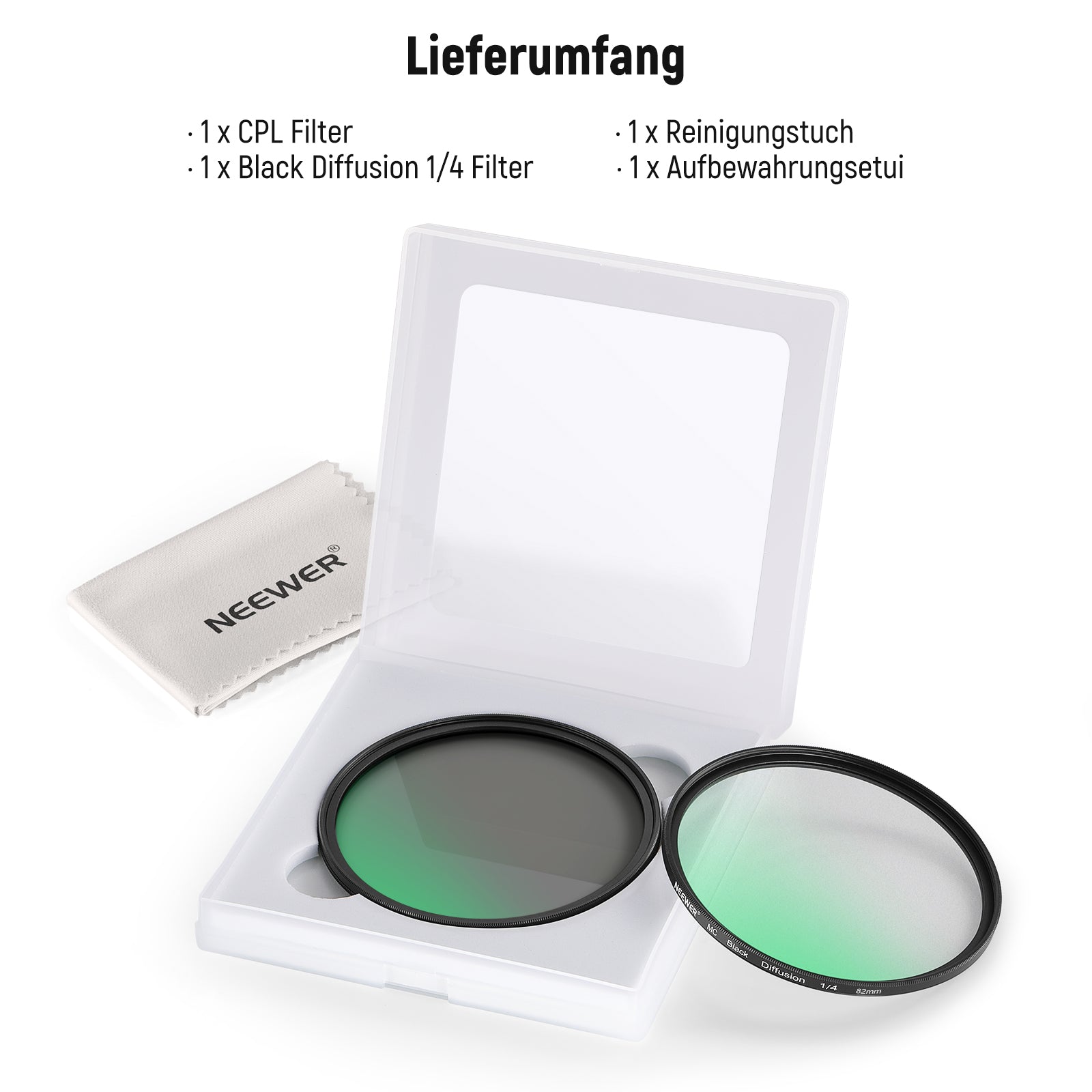 NEEWER 2er Pack CPL + Black Diffusion 1/4 Filter Set