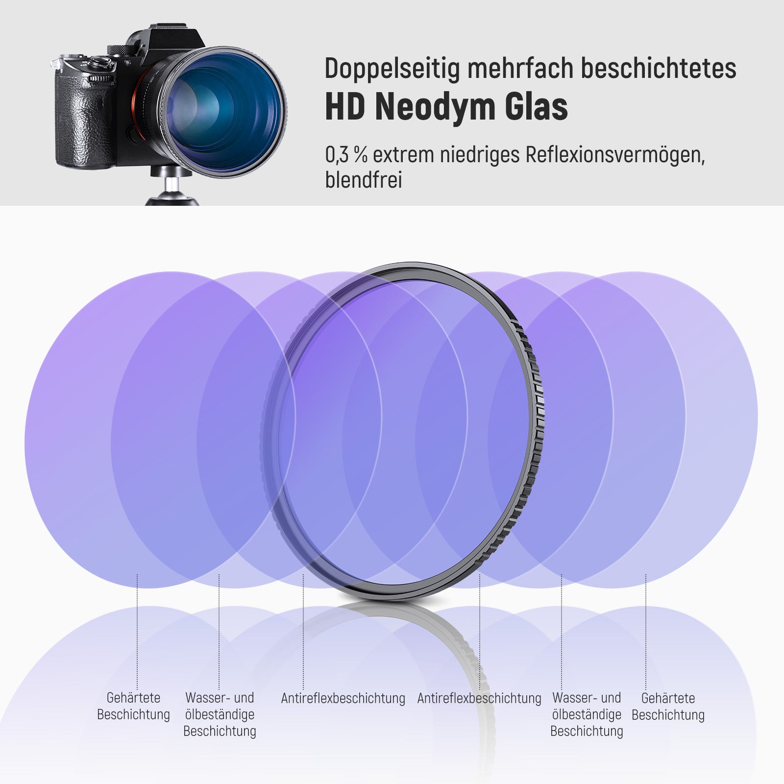 • 【Antireflexions und Antifingerabdruck Beschichtungen】 Der natürliche Nachtfilter besteht auf beiden Seiten aus 28 Schichten Antireflexions und Antifingerabdruck Beschichtungen. Der wasserabweisende, kratzfeste und ölbeständige Filter bietet hervorragenden Schutz für Ihr Kameraobjektiv