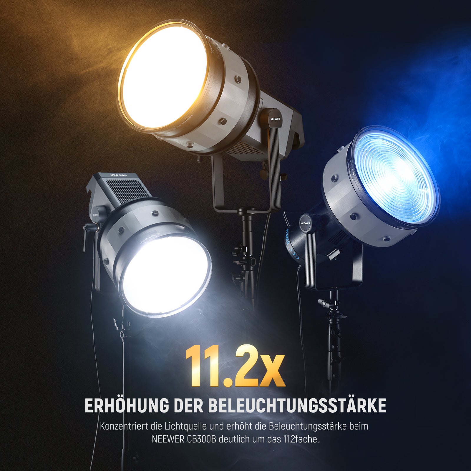 - 11,2x Erhöhung der Beleuchtungsstärke- CSF10 ist eine hochtransparente und lichtdurchlässige Fresnellinse für die Lichtsammlung. Sein Durchmesser von 11,3"/28,8cm eignet sich für die meisten LED Videoleuchten. Bei Installation auf dem NEEWER CB300B erhöht sich die Beleuchtungsstärke deutlich um das 11,2x (die Erhöhungswerte variieren je nach Leuchtenmodell)