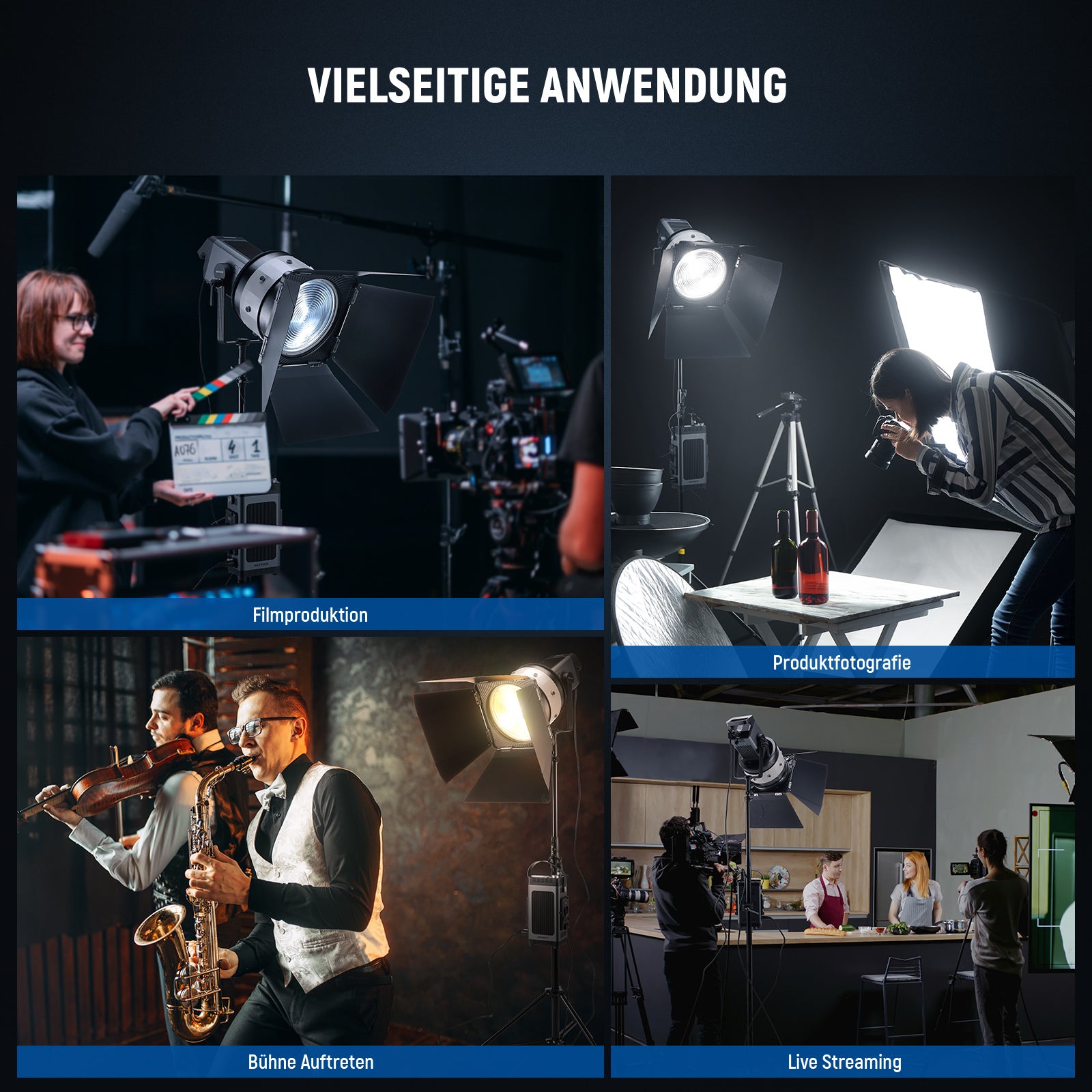 - Abnehmbare Barn Door- Steuern Sie die Lichtverteilung und richtung präzise mit den abnehmbaren Barn Door, um kreative Lichteffekte zu erzielen, die das Geschichtenerzählen Ihrer Filmemacher und Fotografie verbessern