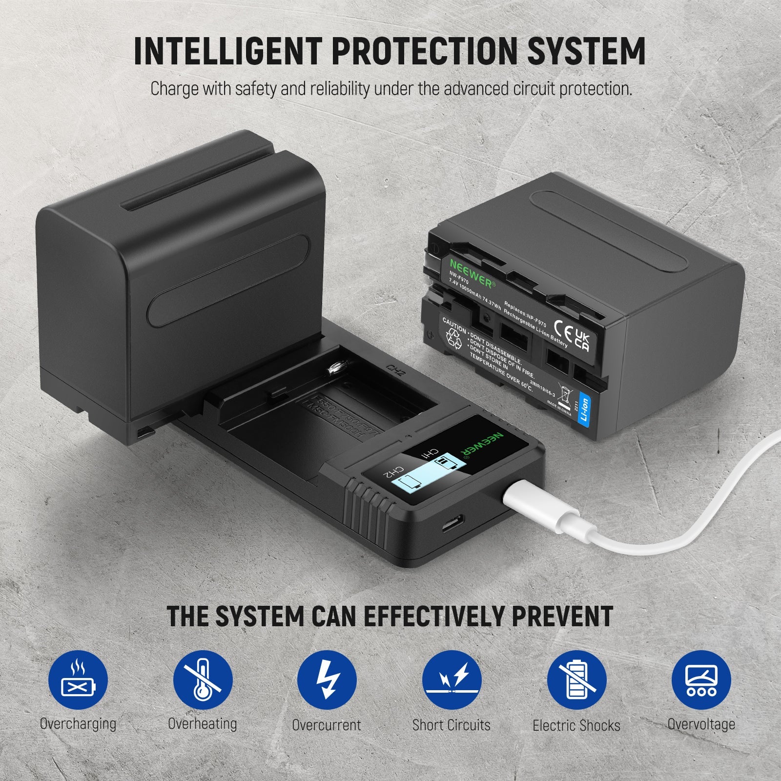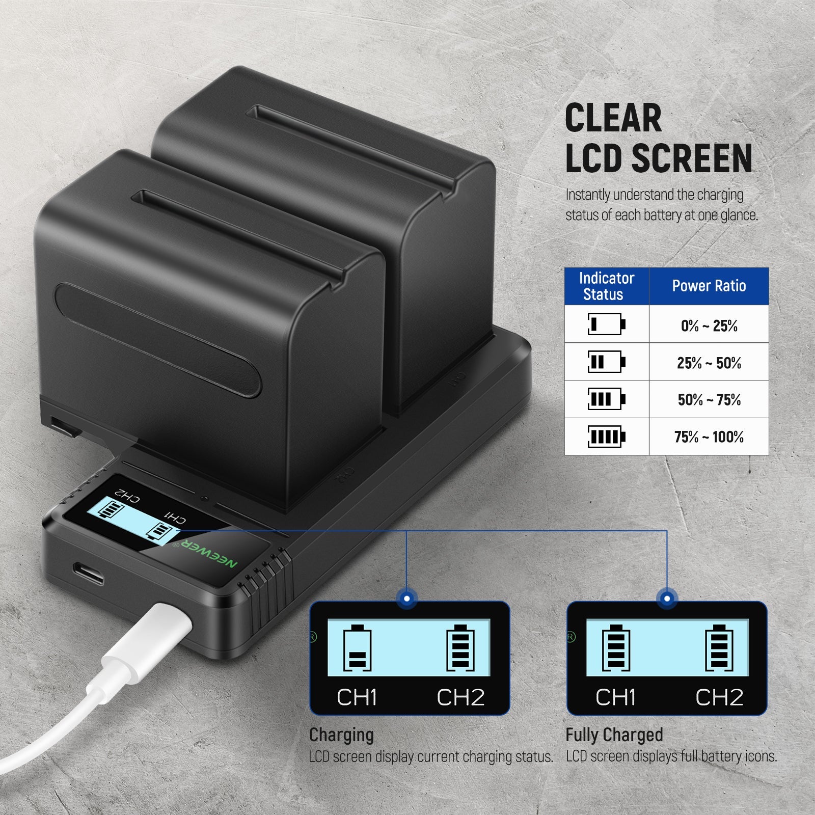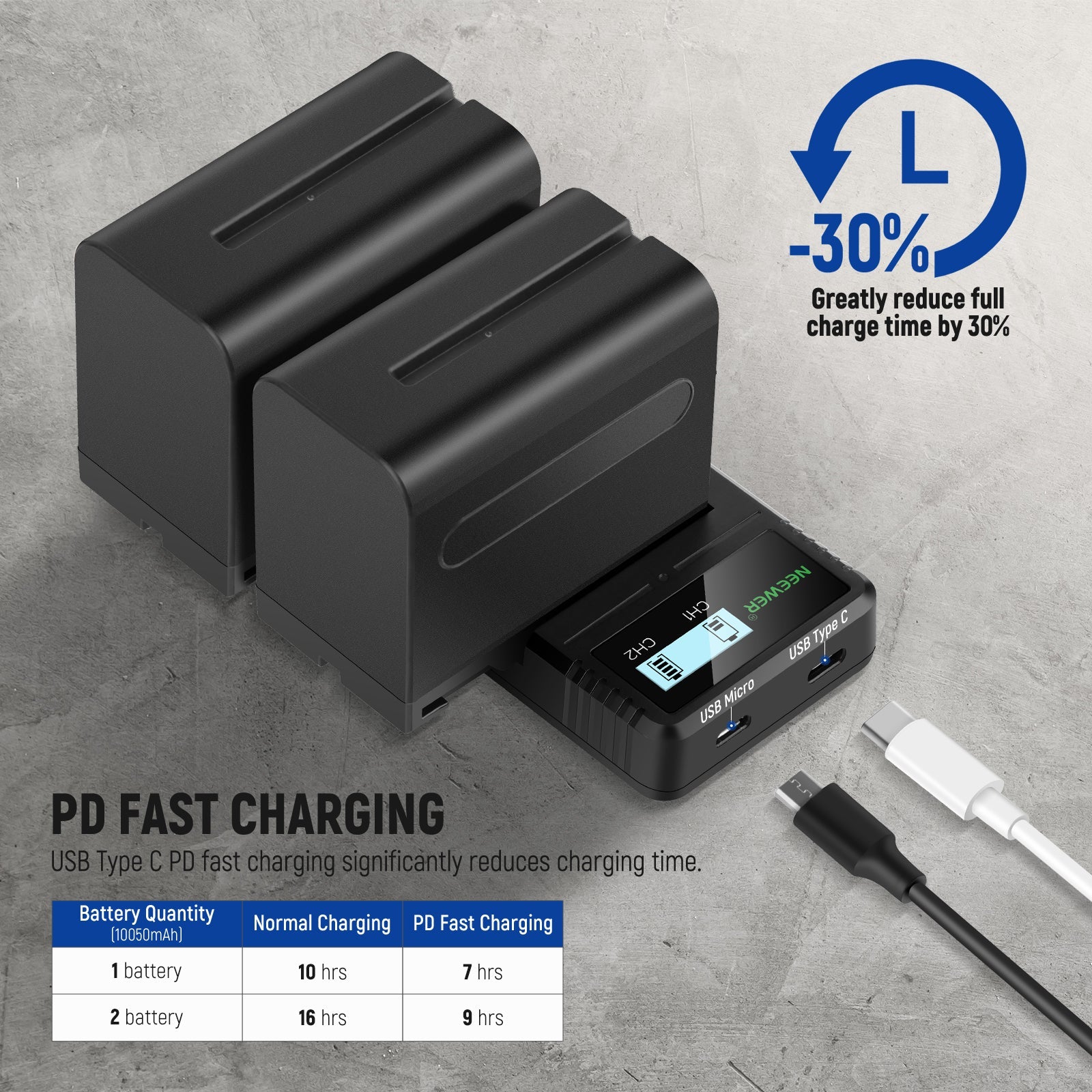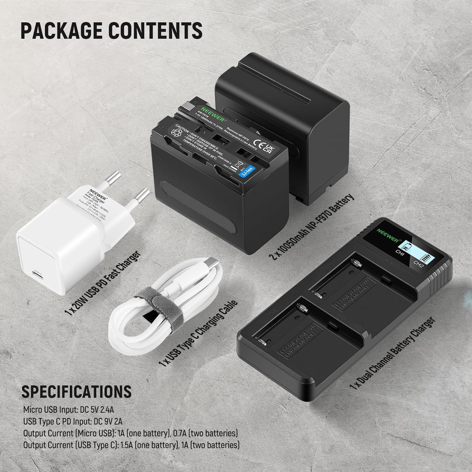 NEEWER 2er Pack 10050mAh NP-F970 Akku mit 20W PD Schnellladegerät Set