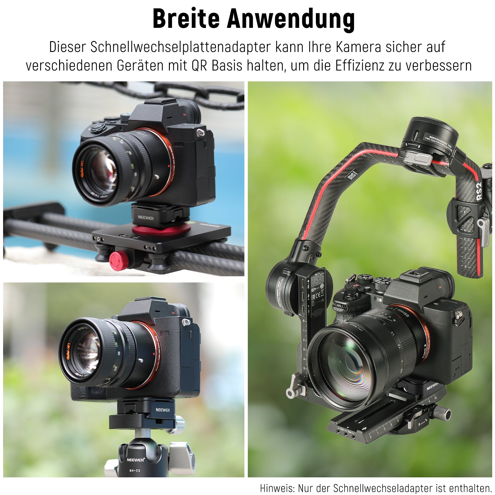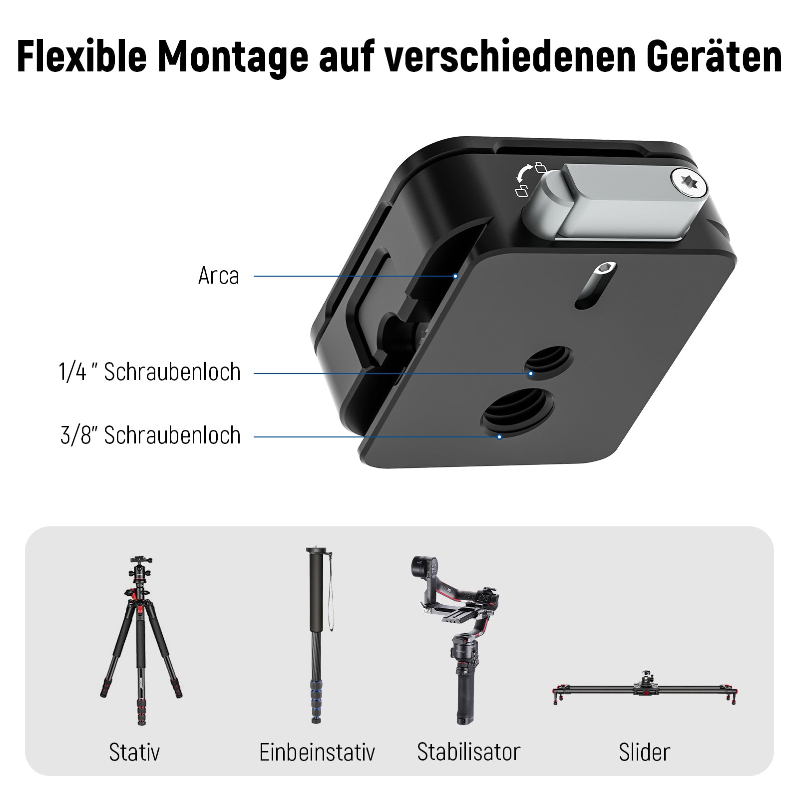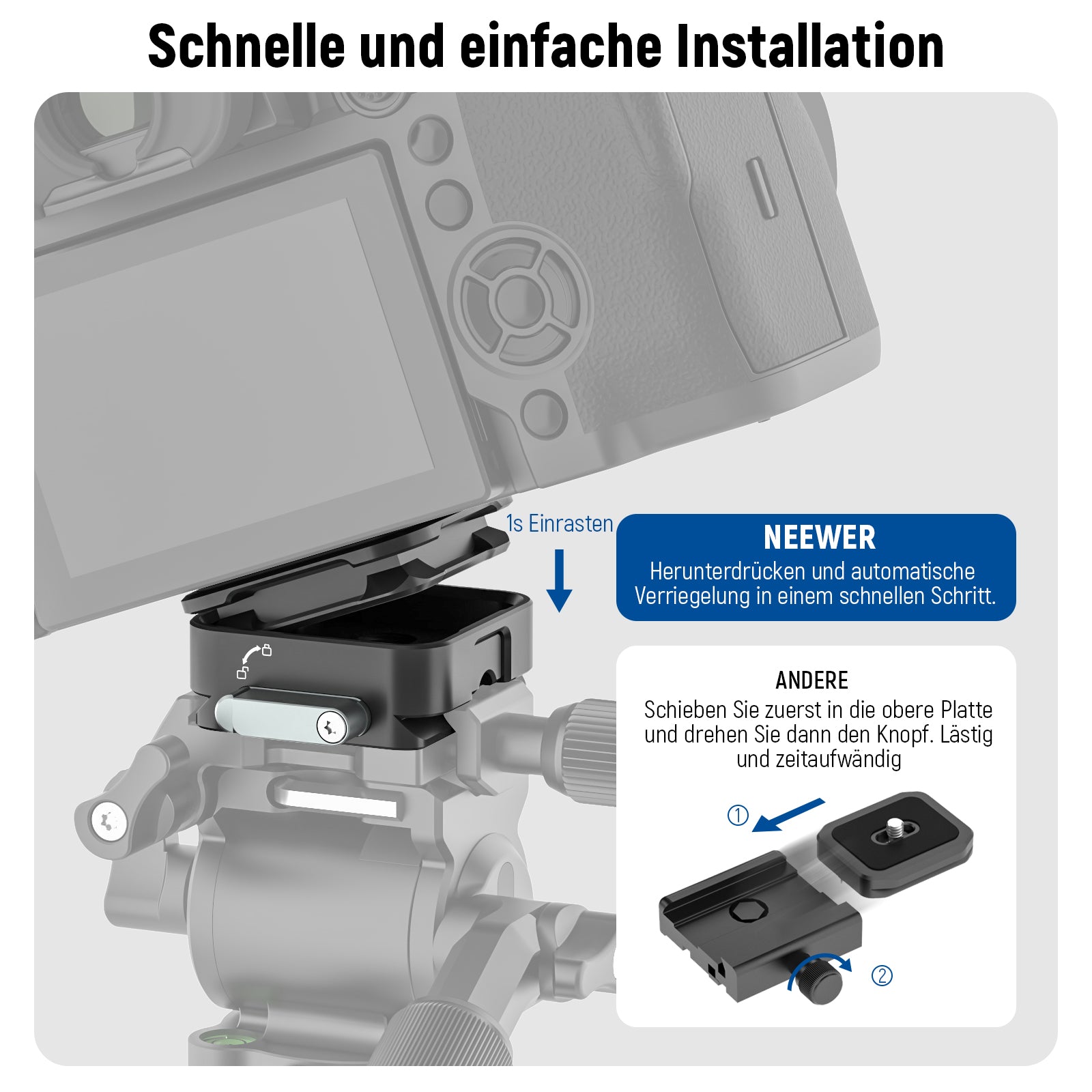 - 【Schnelles Umschalten zwischen verschiedenen Geräten】 Verwenden Sie dieses Schnellwechselplattenset, um Ihre Kamera schnell und einfach auf einem Stativ/Einbeinstativkopf, Gimbal-Stabilisator, Slider usw. zu montieren und zwischen diesen Geräten zu wechseln, ohne die Schnellwechselplatte zu wechseln. Sparen Sie Zeit und Mühe, steigern Sie die Effizienz und reduzieren Sie potenziellen Verschleiß am unterem Gewinde Ihrer Kamera