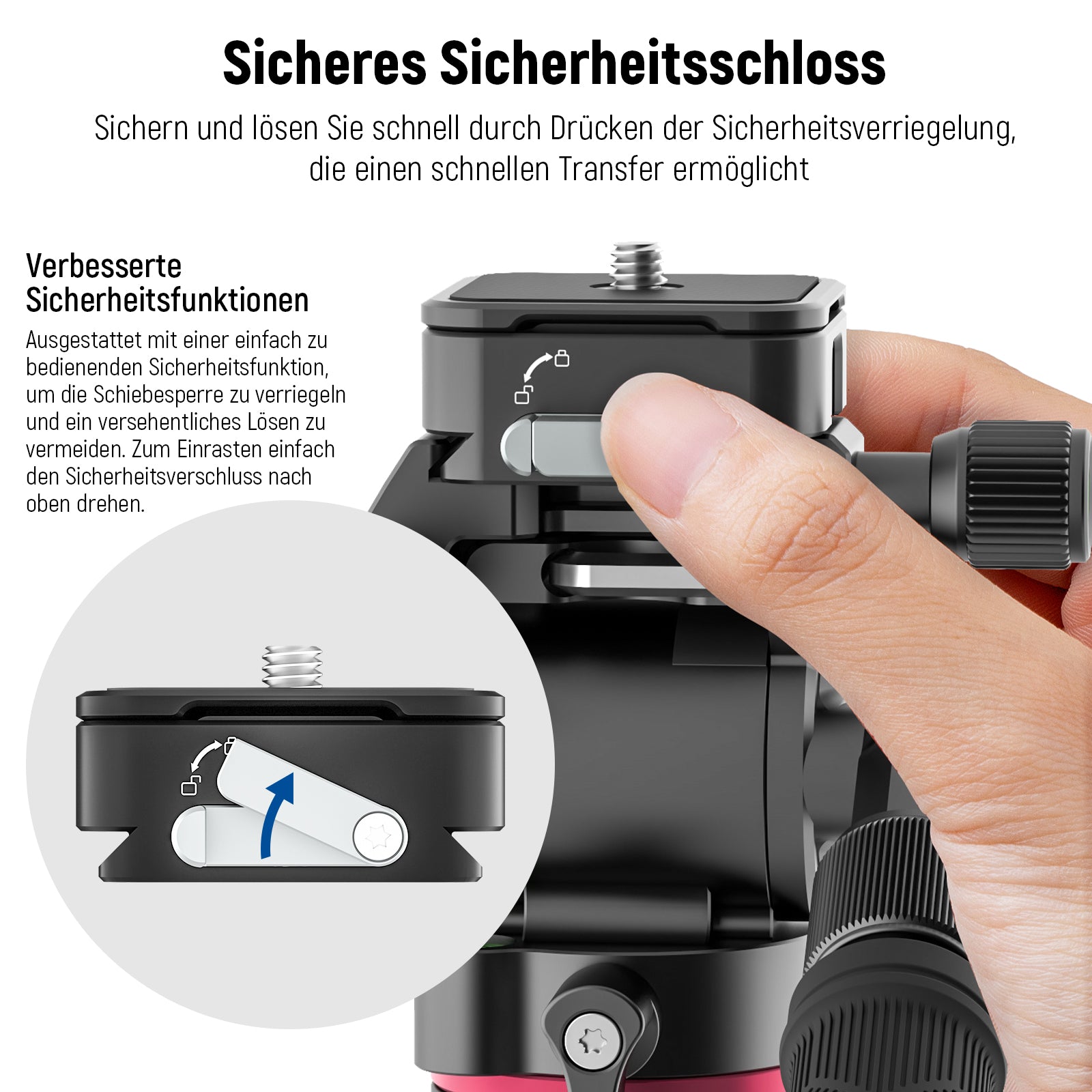 - 【1s Automatischen Verrigelungsdesign】 Im Gegensatz zu herkömmlichen schiebe Schnellverschluss-Designs verfügt der CA009 über ein Schnapp Design, mit dem Sie die Schnellwechselplatte schnell verriegeln können, indem Sie sie 1 Sekunde lang drücken. Die Sicherheitsverriegelung sichert die Kamera automatisch und verhindert, dass sie herunterfällt. Mit einer so einfachen Einrichtung können Sie die Ausrüstung während des Fotografierens schnell wechseln