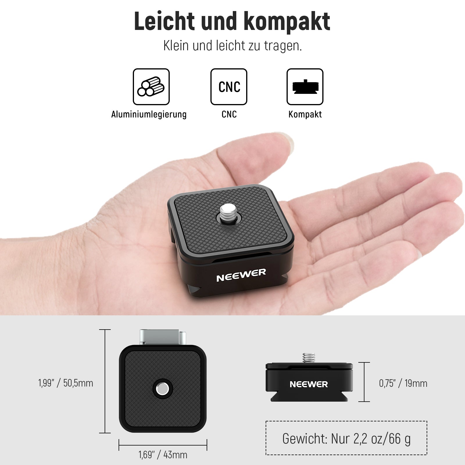 - 【Konstruktion aus massiver Aluminiumlegierung】 Dieses Produkt wird aus einer hochwertigen Aluminiumlegierung hergestellt und ist langlebig und dennoch leicht. Obwohl es nur 66 g (2,3 oz) wiegt, kann seine maximale Tragfähigkeit 8 kg (17,6 lb) erreichen, um eine zuverlässige Stabilität zu gewährleisten. Ein L-förmiger Sechskantschlüssel ist im Lieferumfang enthalten