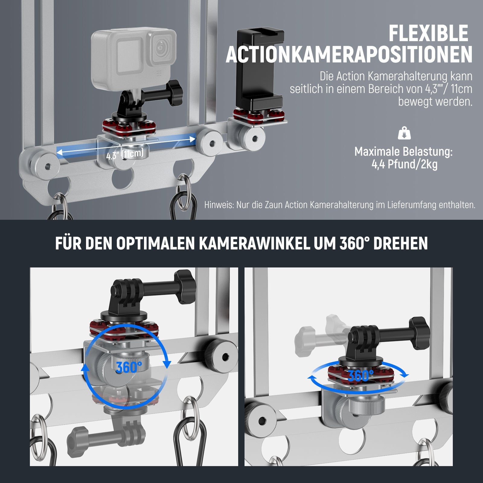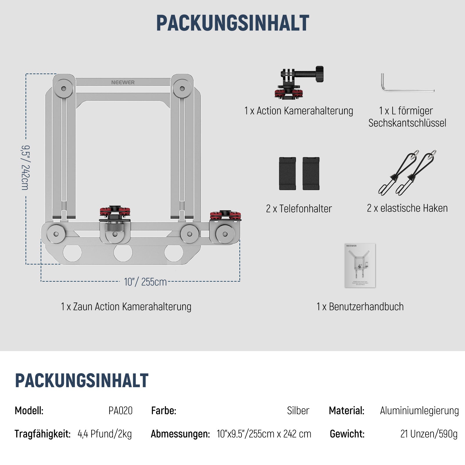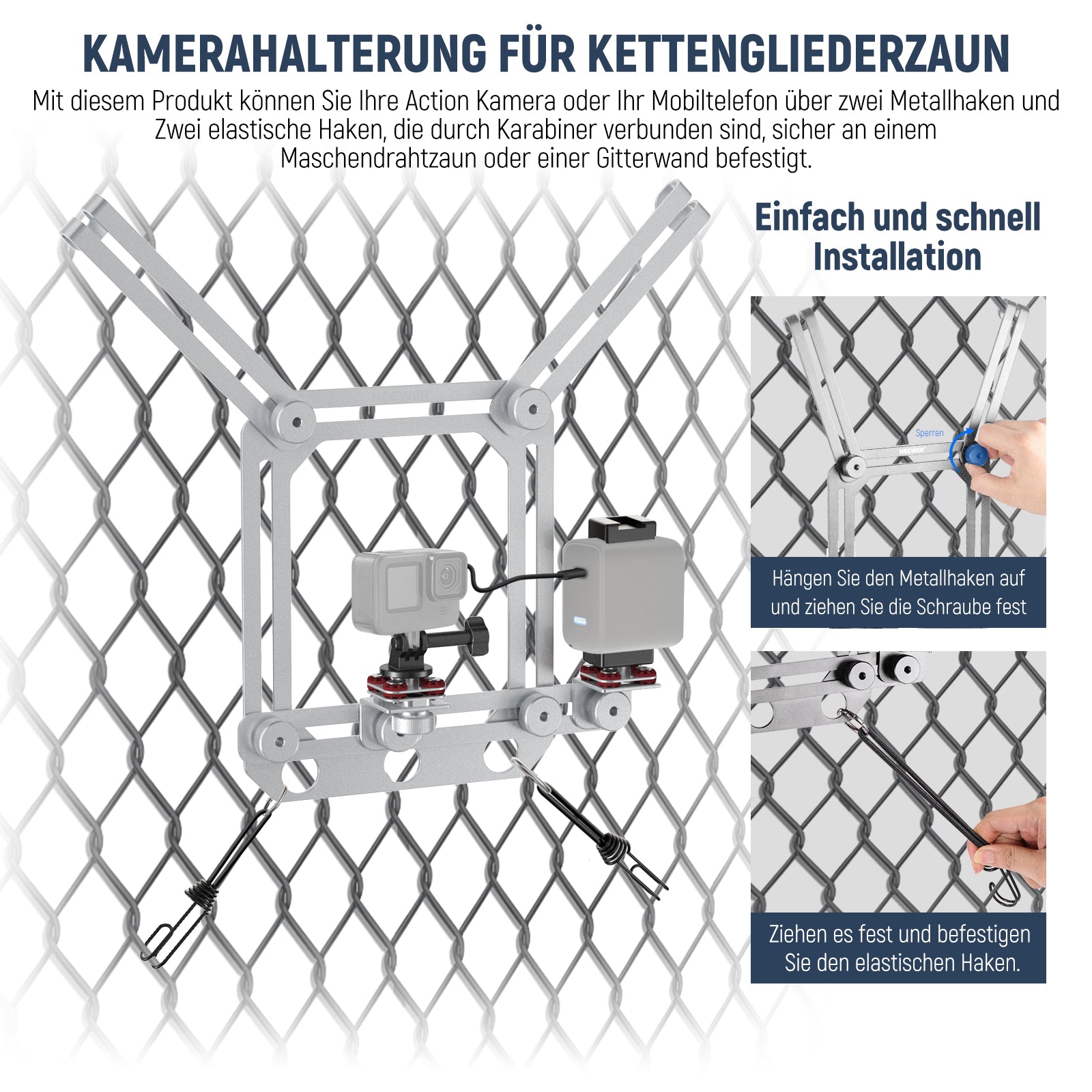 NEEWER PA022 Zaunhalterung für Action Kamera mit Handy Halterung
