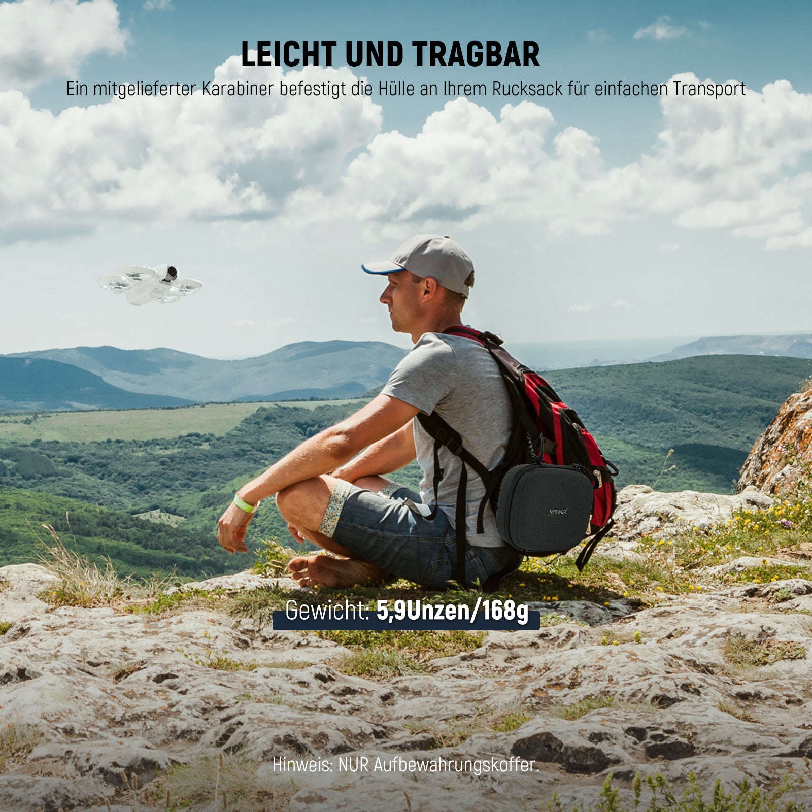 - NEO-Drohnen-Hartschalen-Aufbewahrungstasche- Perfekt kompatibel mit DJI NEO Drohne, diese harte Hülle ist stoßfest, um Ihre Ausrüstung während des Transports sicher zu halten. Ein mitgelieferter Karabiner befestigt die Tasche an Ihrem Rucksack für eine bessere Tragbarkeit