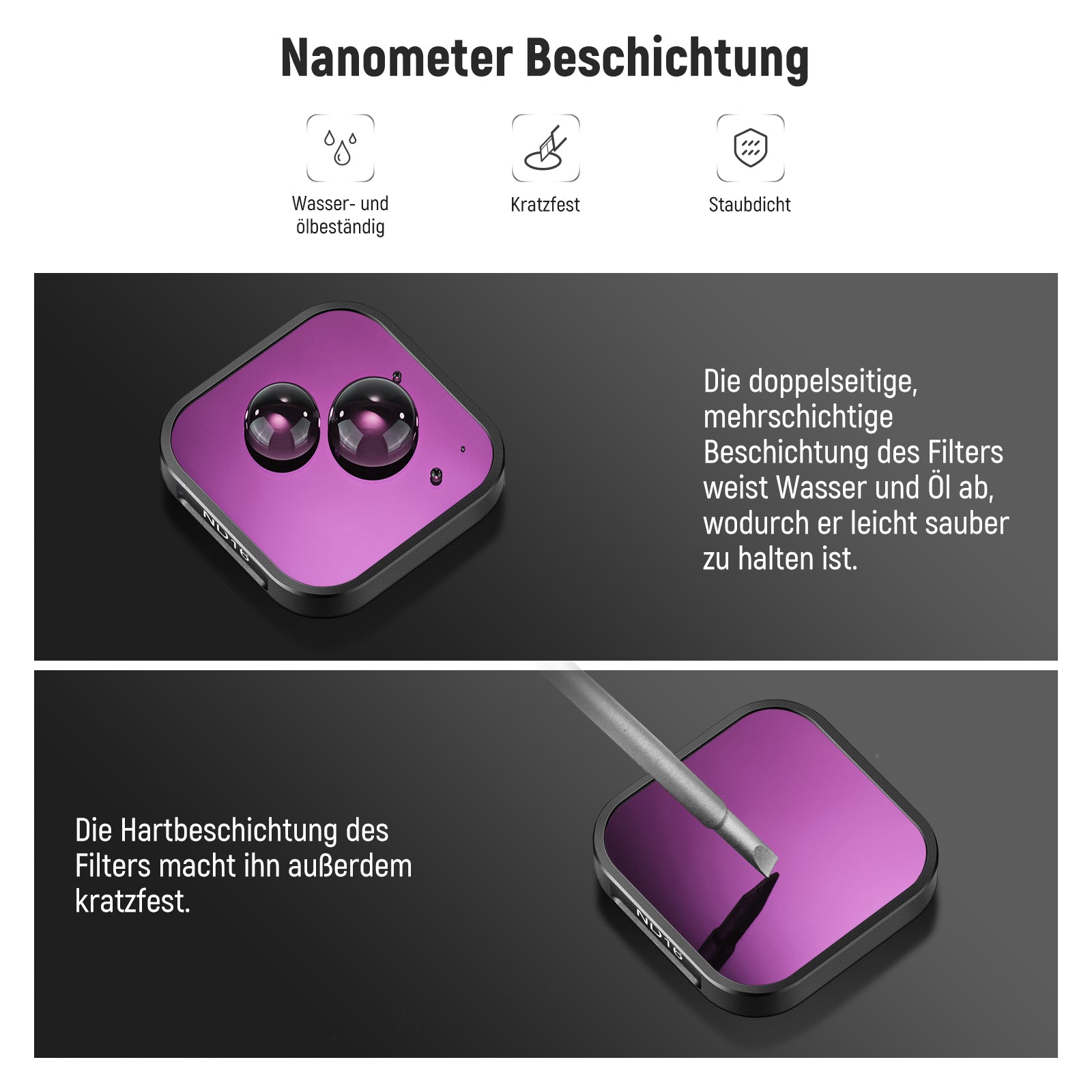 - 【Multiresistente Nanobeschichtungen】 Diese Filter sind mit 28 Schichten Nanobeschichtungen geschützt und so konstruiert, dass sie wasserabweisend, kratzfest, ölbeständig und resistent gegen Fingerabdrücke sind. Hinweis: Nur die Glasoberfläche ist wasserdicht, die gesamten Filter können nicht unter Wasser verwendet werden
