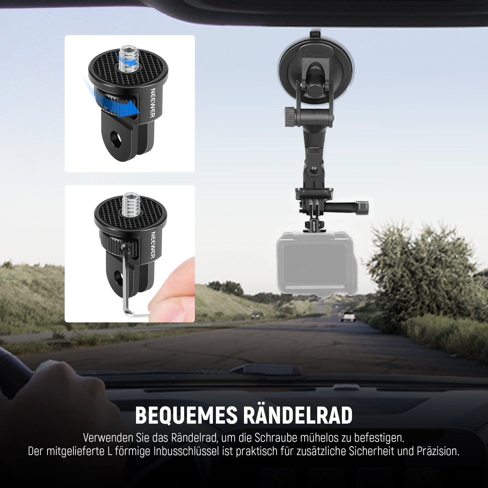 - Schnelles Anziehen des Daumenrads- Verwenden Sie das Daumenrad, um die Schraube mühelos zu sichern – keine Notwendigkeit für Werkzeuge. Der mitgelieferte L-förmige Sechskantschlüssel ist praktisch für zusätzliche Sicherheit und Präzision