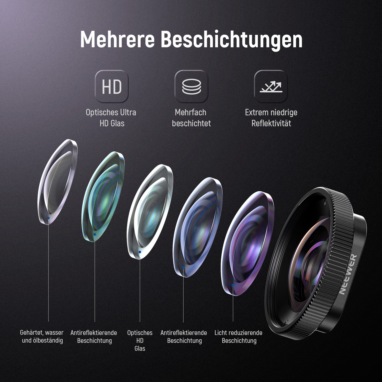 - Antireflektierendes, mehrfach beschichtetes optisches HD Glas- Das hochwertige optische HD Glas sorgt für eine hohe Klarheit bei Ihren Nahaufnahmen. Die mehrfachen Antireflexbeschichtungen auf beiden Seiten des Objektivs reduzieren Blendung und Geisterbilder und erhalten gleichzeitig lebendige Farben und verbesserten Kontrast