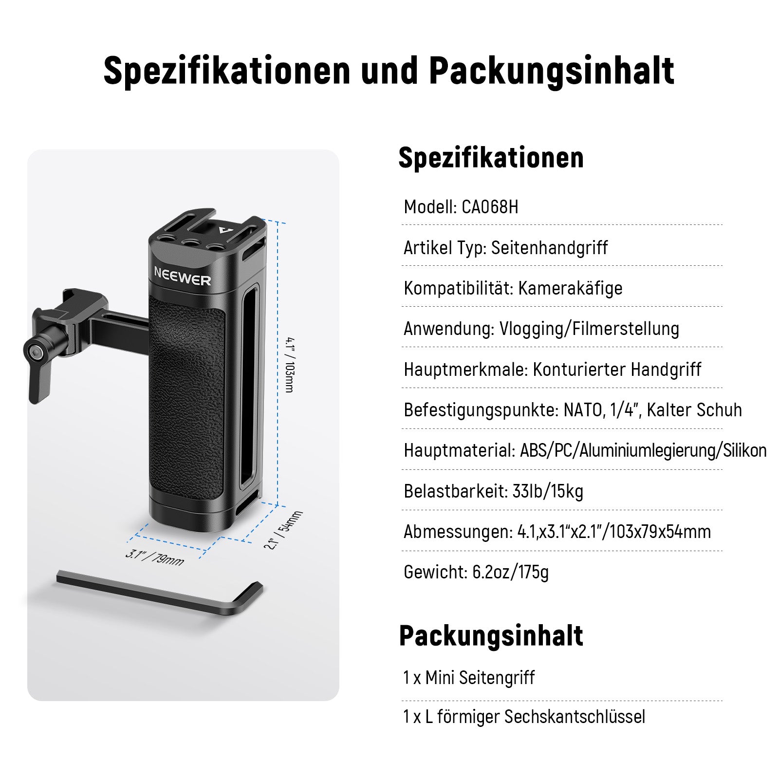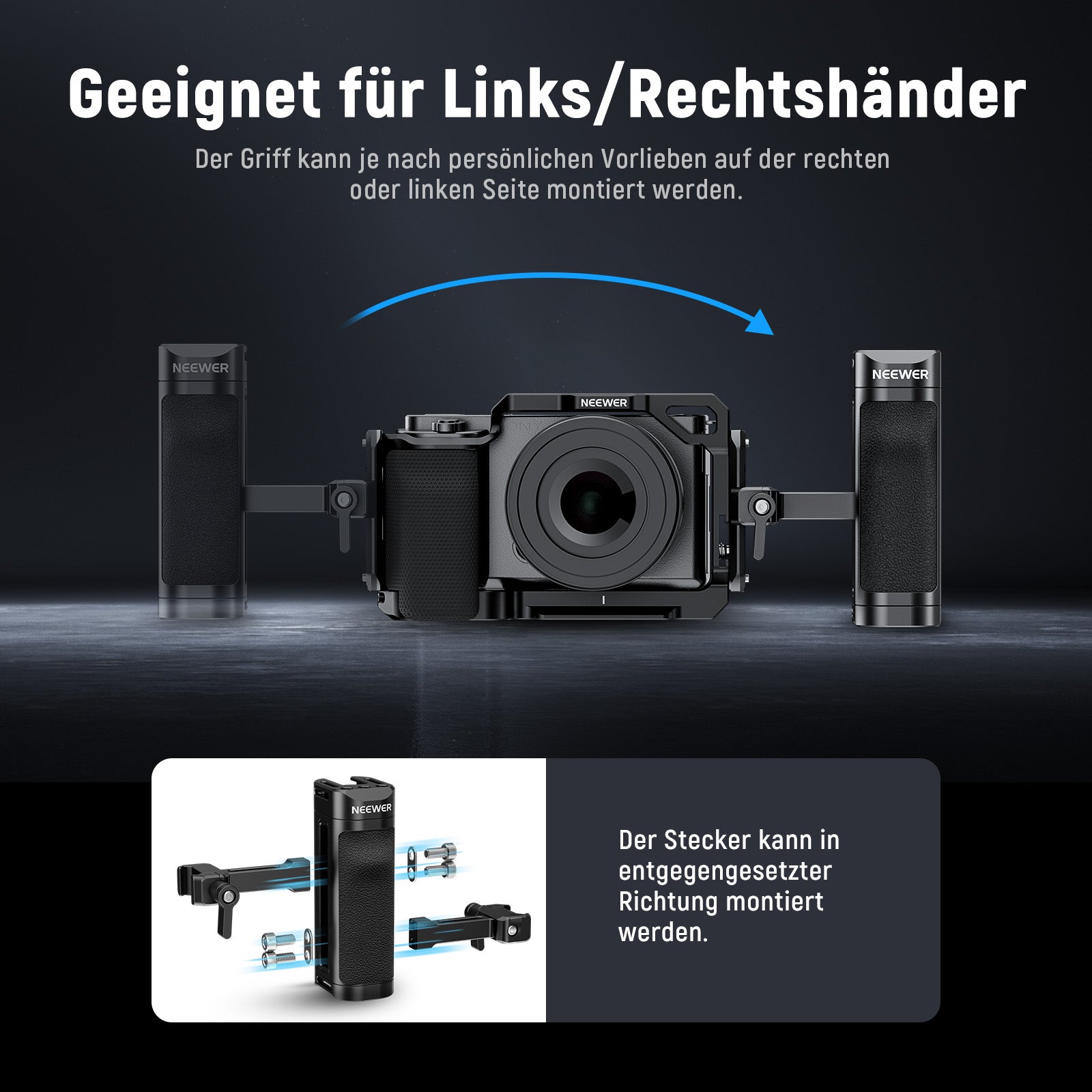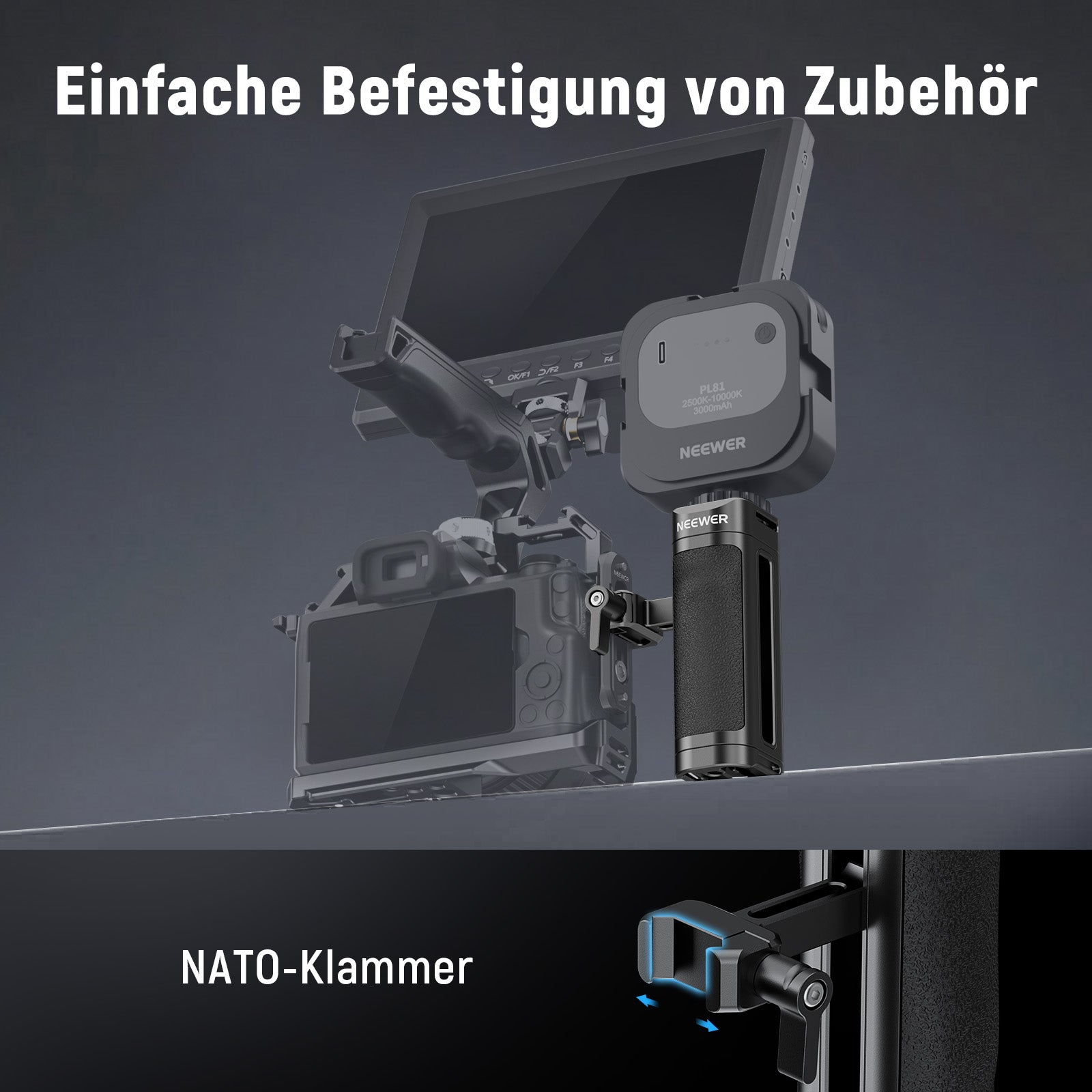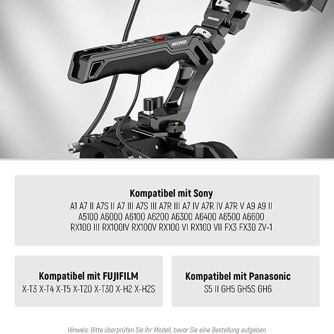 NEEWER bietet Fotografie-Griffe an, um Ihnen ein besseres Shooting-Erlebnis zu ermöglichen. Unser Sortiment umfasst Seiten- und Kameragriffe sowie weitere Modelle. Diese Kameragriffe sind leicht und tragbar. Sie können an verschiedene Zubehörteile angeschlossen werden, einschließlich Kameramonitorhalterungen, Videomikrofone und LED-Videoleuchten, um die Videoqualität zu verbessern.