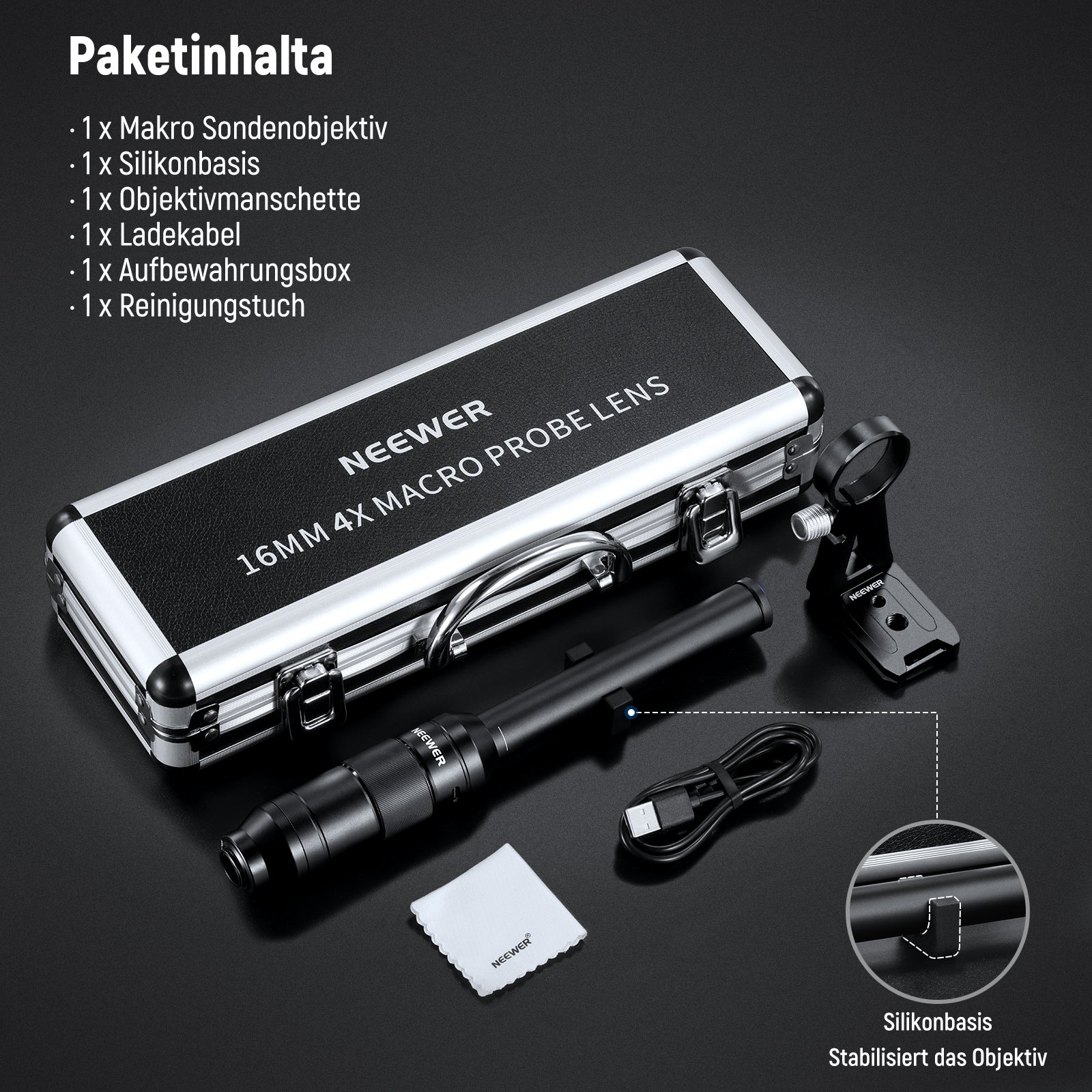 Die Mikroskop-Sondenlinse ermöglicht es Ihnen, tief in Bereiche vorzudringen, die mit herkömmlichen Objektiven nur schwer erreichbar sind – für beeindruckende Makrofotografie.