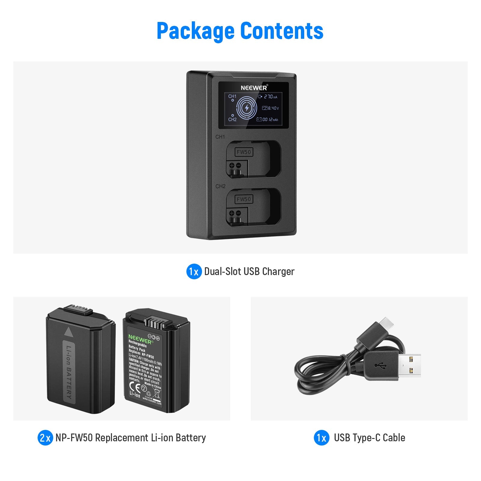 NEEWER 2er Pack Sony NP-FW50 1100mAh Ersatzakku Ladegerät Set