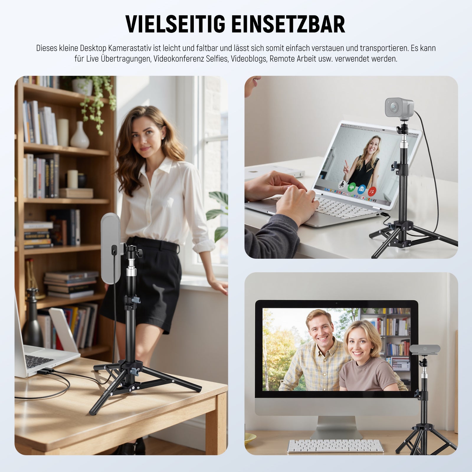 • Kompaktes und tragbares Desktop Stativ- Das leichte und faltbare kleine Tischstativ ST45B für Kameras mit iPhone kompatibler Handyhalterung lässt sich einfach verstauen und auf Reisen mitnehmen. Eine ideale Fotoausrüstung, um Ihr Mobiltelefon oder Ihre Stream Webcam über den Schreibtisch zu halten für Live Streaming, Videokonferenzen, Zoom Anrufe, Selfies, Vlogging, Online Unterricht, Make up Tutorials, Erstellung von Medieninhalten, Remote Arbeit und mehr