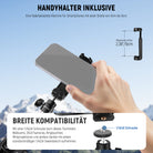 • Schnelle Einrichtung mit 1/4" Schraube- Befestigen Sie Ihre Streaming Webcam oder Kamera ganz einfach mit der 1/4" Schraube des Stativs für sofortiges Streaming oder Aufzeichnen. Außerdem ist eine Handyhalterung für die Montage eines Smartphones kompatibel mit iPhone DJI Osmo Pocket 3 handle Insta360 Ace Pro Insta 360 Go 3 Actionkamera, flexibel für mehr Funktionen, handheld als wesentlich und muss für Content Creators, Influencer, Vlogger und Streamer unterwegs haben