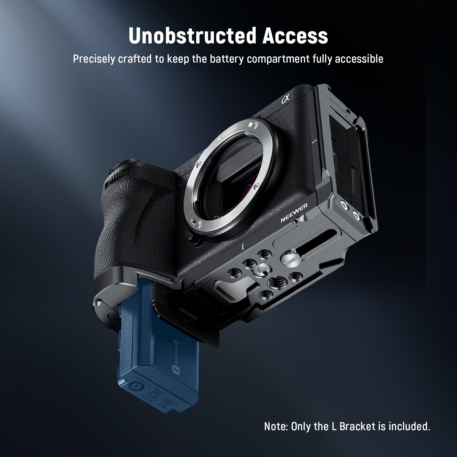 - 【Formschlüssiges Design, kompatibel mit Sony A6700】 Hergestellt aus einer CNC gefrästen, schwarz eloxierten Aluminiumlegierung, bietet diese L Halterung vollständigen Zugriff auf die Augenmuschel, den Klappbildschirm, das Batteriefach, die Funktionstasten und die Anschlüsse Ihrer A6700 Kamera. Mit einem Gewicht von nur 106g ist es leicht und praktisch für unterwegs