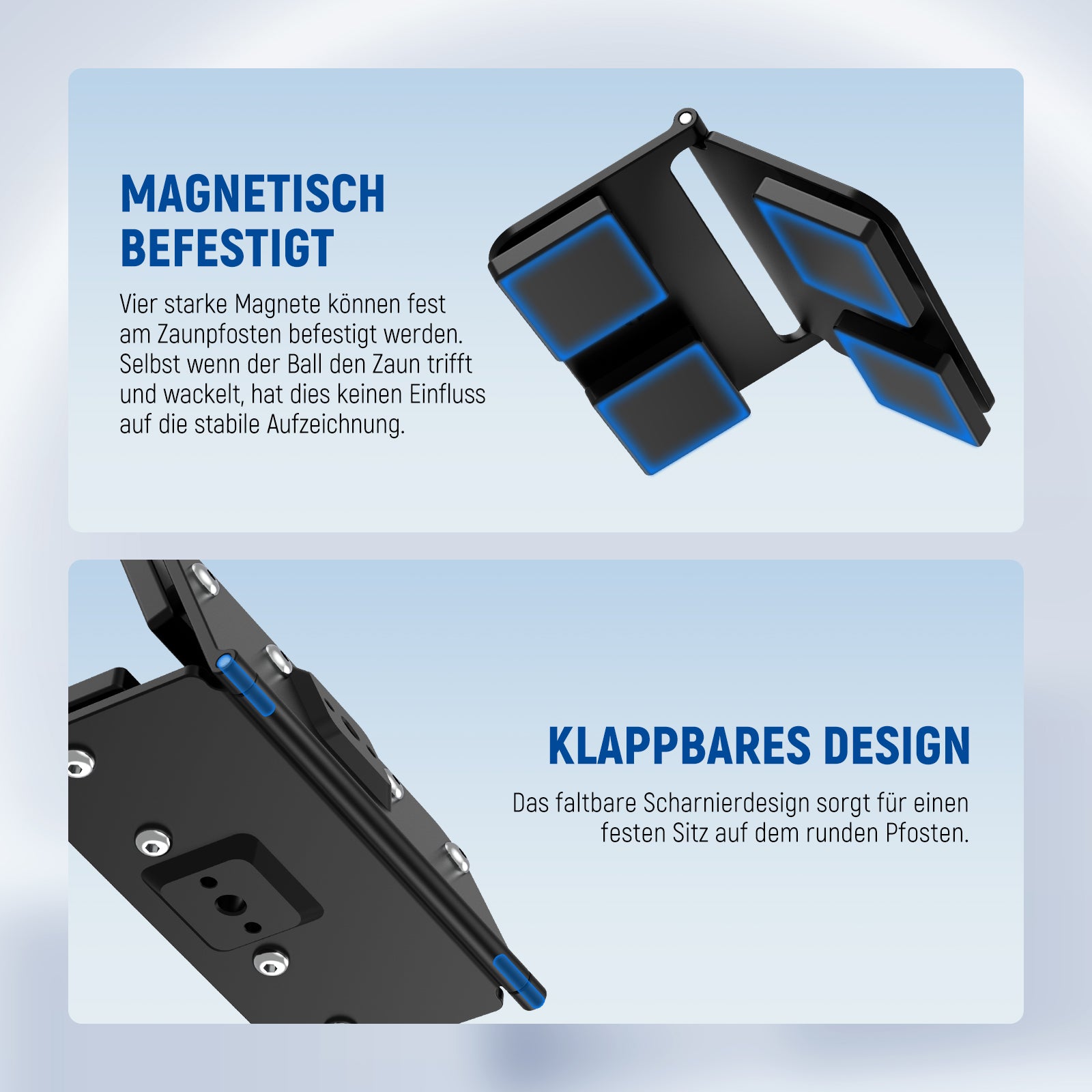 - Magnetic Fence Mount Set für Streaming- Befestigen Sie ein Handy oder eine Action Cam magnetisch an den Zaunpfosten, mit einem doppelten Kugelkopf Magic Arm für flexible Winkel, ideal für Video und Live Streaming von Baseball, Basketball, Tennis, Volleyball, Fußball und anderen Sportarten mit diesem Kamera und Phone Zaunbefestigungsset, kompatibel mit Game Changer App für Punktevergabe, Vlogging, Videoaufzeichnung oder kompatibel mit Mevo Start für Live Streaming. Maximale Belastung 400g