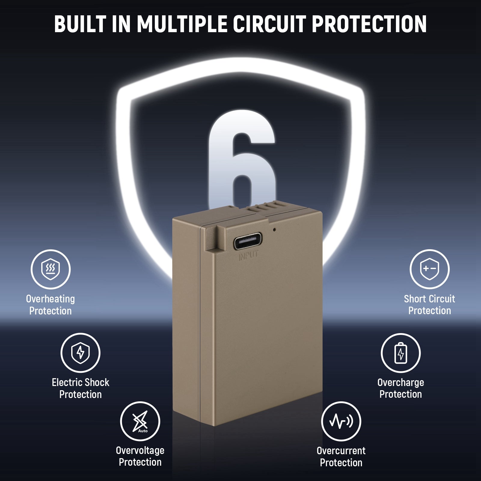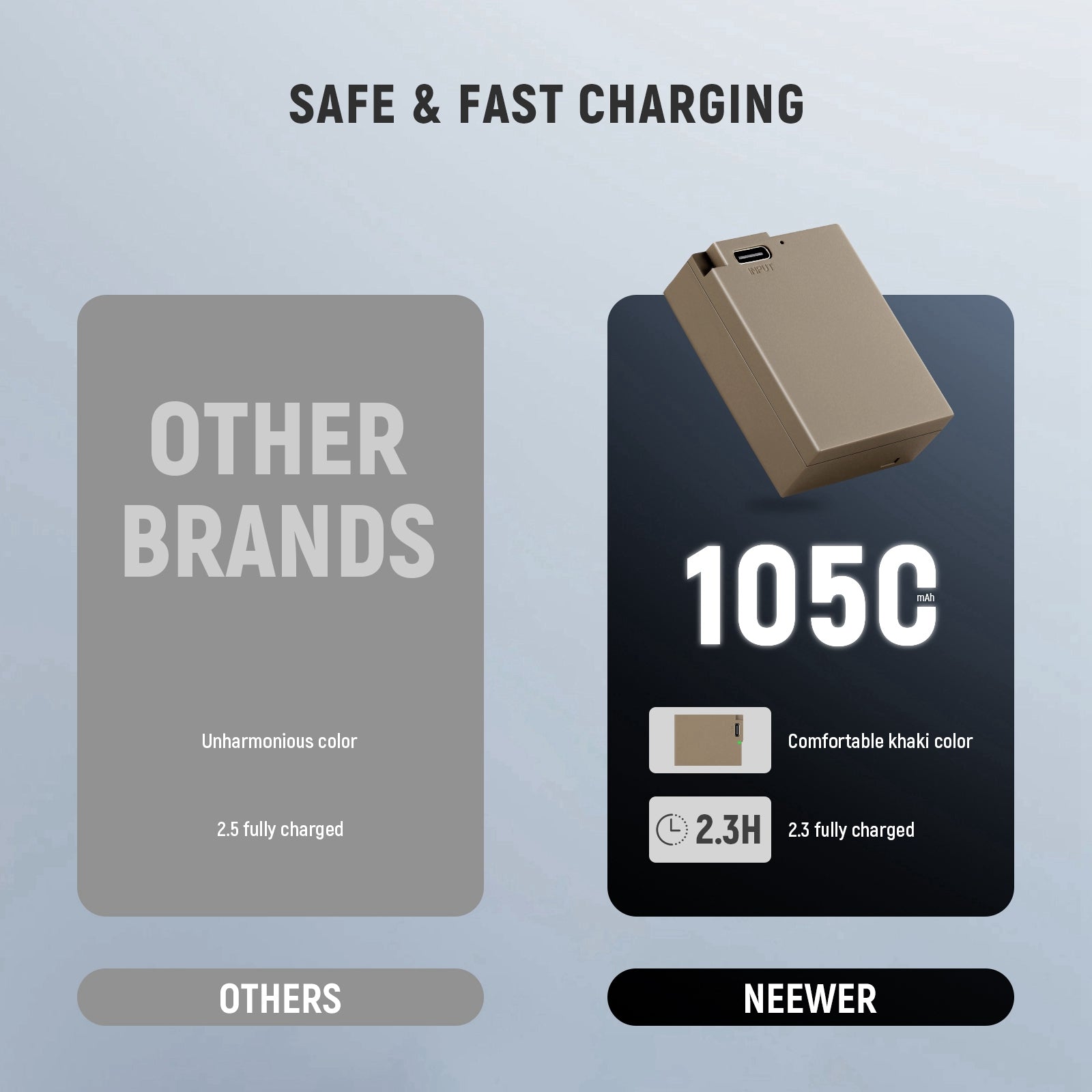 - 【Hohe Batteriekapazität】 Der Akku hat eine Kapazität von 1100mAh (7,2V/7,9Wh) und kann mit einem normalen 5V 2A USB Netzteil in 2,3 Stunden vollständig aufgeladen werden. Hinweis: PD Schnellladung wird NICHT unterstützt