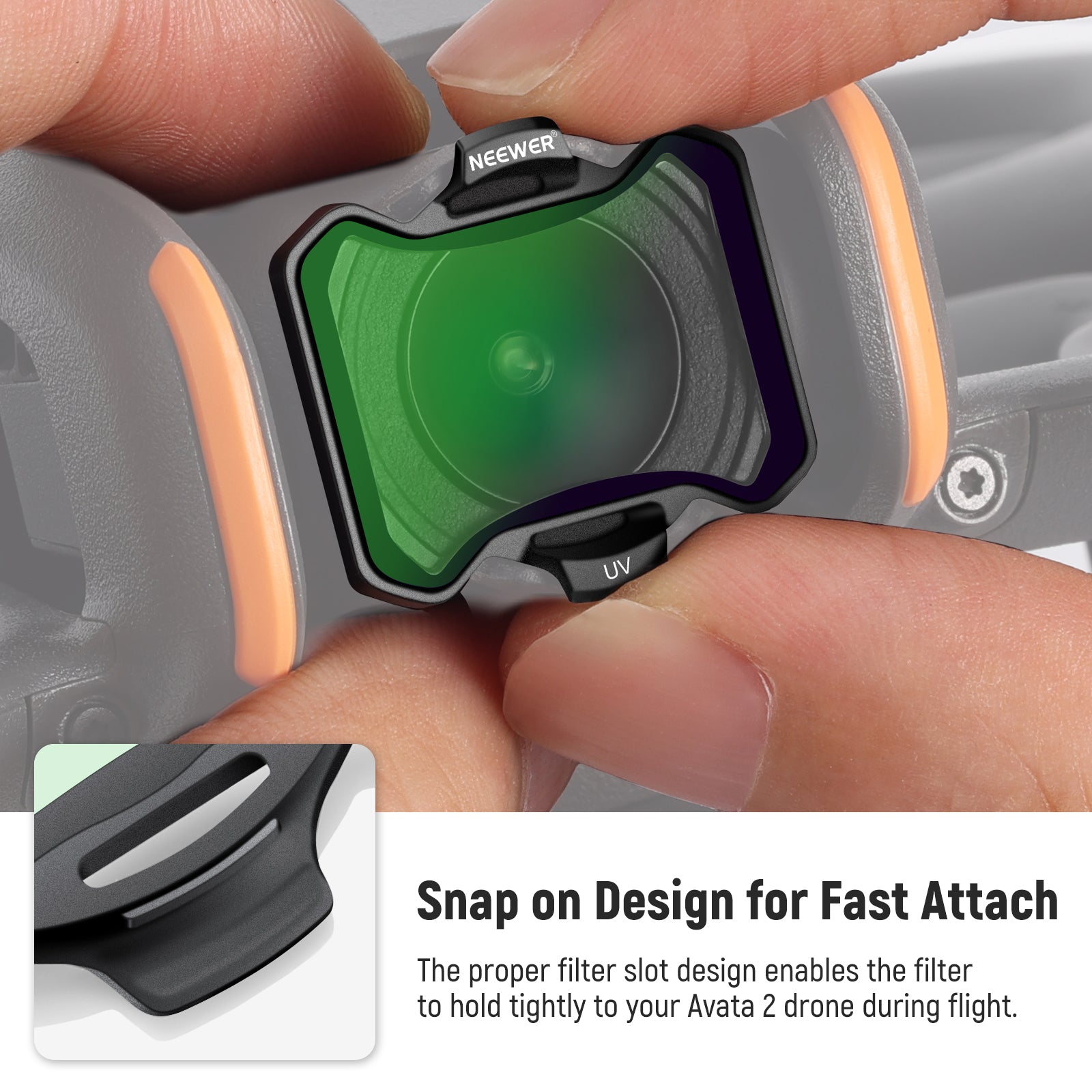 - Voll kompatibel mit Avata 2- Das mit DJI Avata 2 kompatible NEEWER ND CPL und UV Filterset umfasst ND8, ND16, ND32, ND64, Filter und UV Filter, sodass Sie den perfekten Neutraldichtefilter auswählen können, um Blende und Verschlusszeit präzise zu steuern, außerdem schützt es Ihr Objektiv vor Staub und Kratzern. Montieren Sie diese Filter am Objektiv Ihrer Drohne, verbessern Sie die Belichtungskontrolle bei wechselnden Wetterbedingungen und erhalten Sie magische und aufregende Drohnenaufnahmen