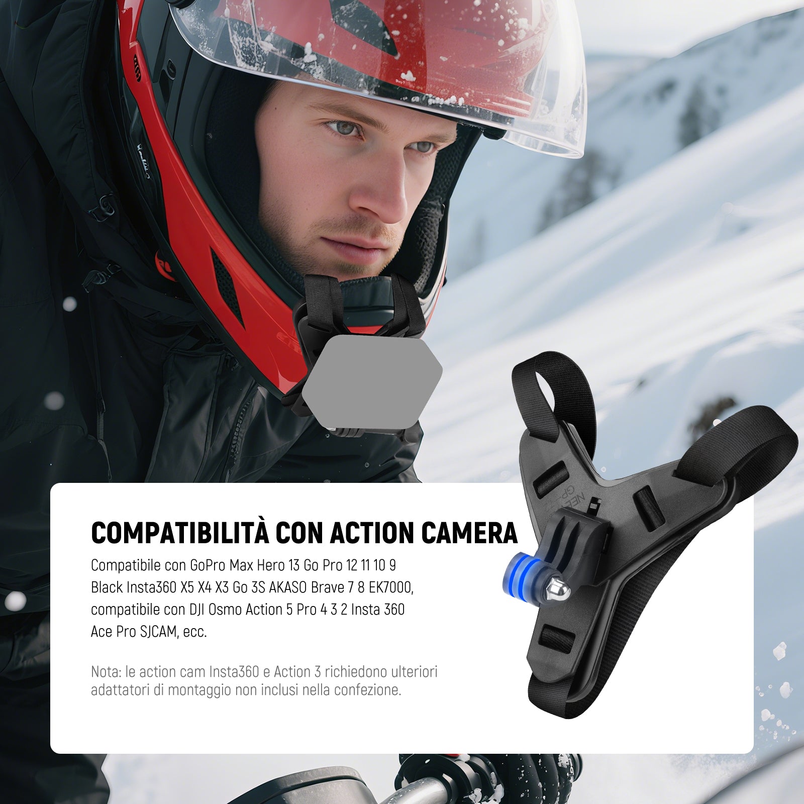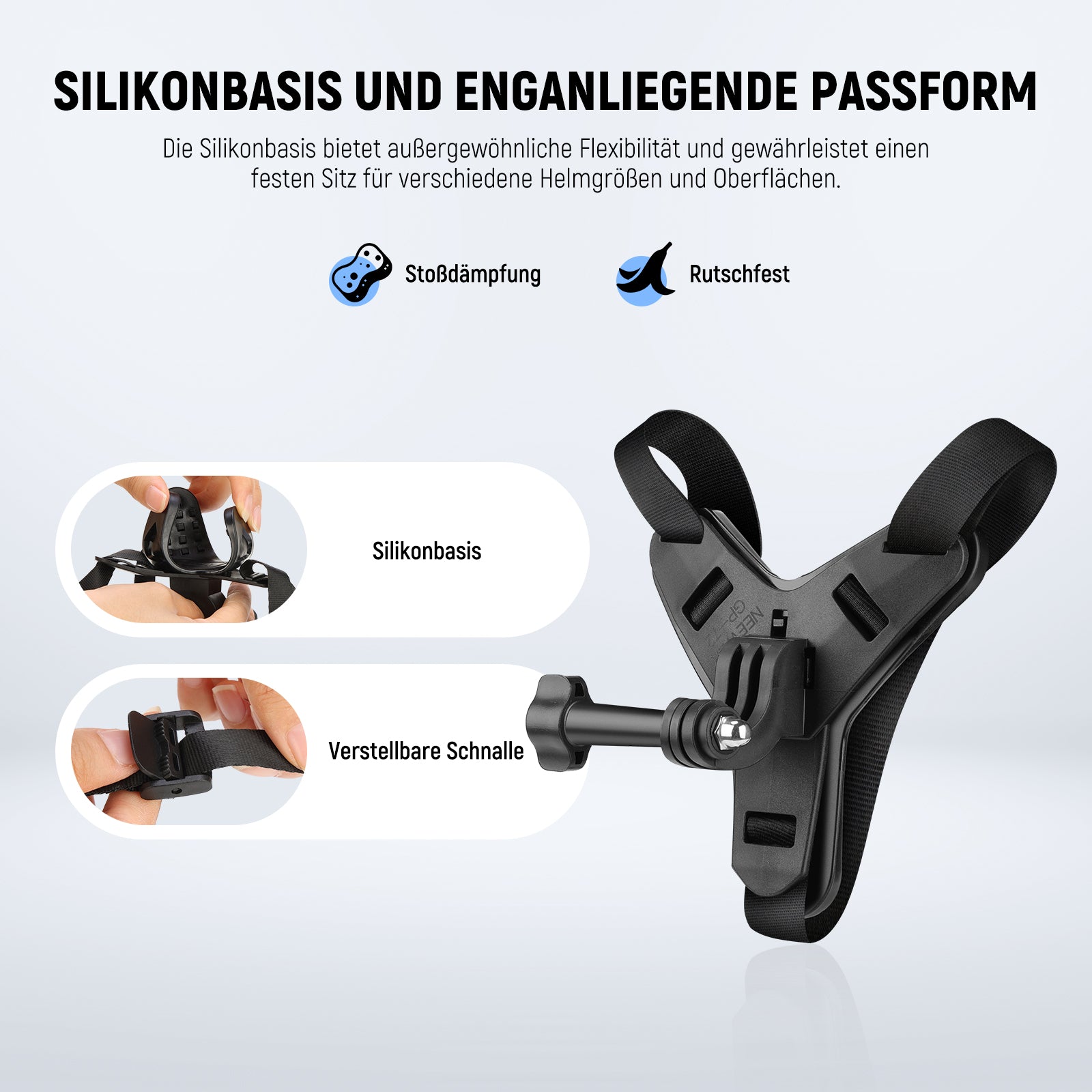 Robust und leicht- Die Helmhalterung Chin Mount besteht aus Kunststoff, Silikon und gewebten Riemen, ist robust und leicht und bietet zusätzliche Sicherheit bei längerem Tragen. Sie ist ideal als unverzichtbare Fotoausrüstung für Content Creator und Influencer