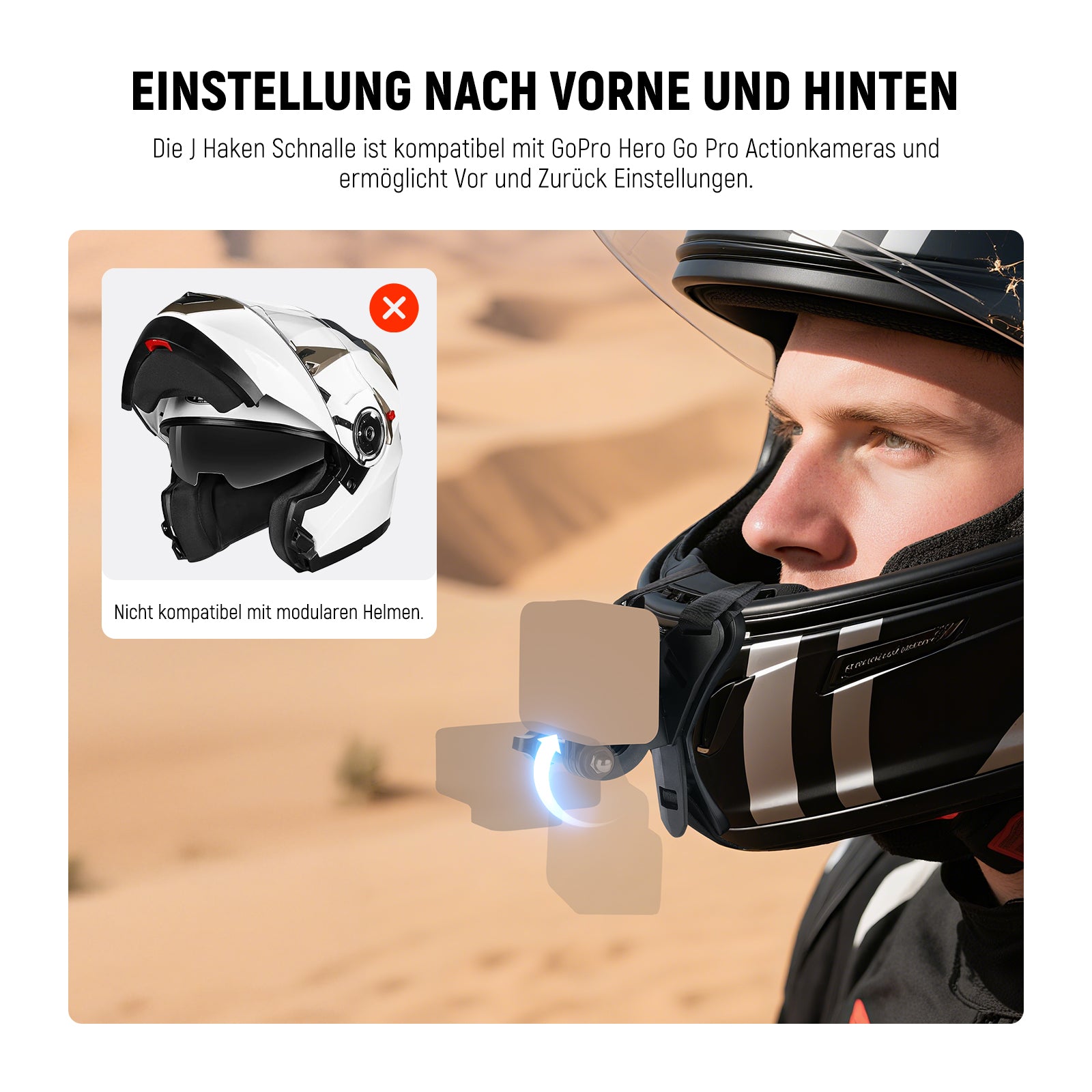 - Vorwärts und rückwärts einstellen- Die J Haken Schnalle, kompatibel mit GoPro Hero Go Pro Actionkameras, ermöglicht Vor und Rückwärts Einstellungen sowie sicheren Halt und bietet durch variable Aufnahmehöhen vielfältige Einsatzmöglichkeiten für unterschiedliche Fotobedürfnisse. Hinweis: Nicht für Helme mit langem Kinn geeignet