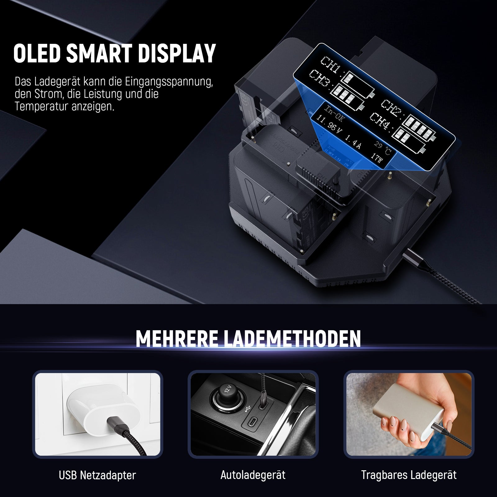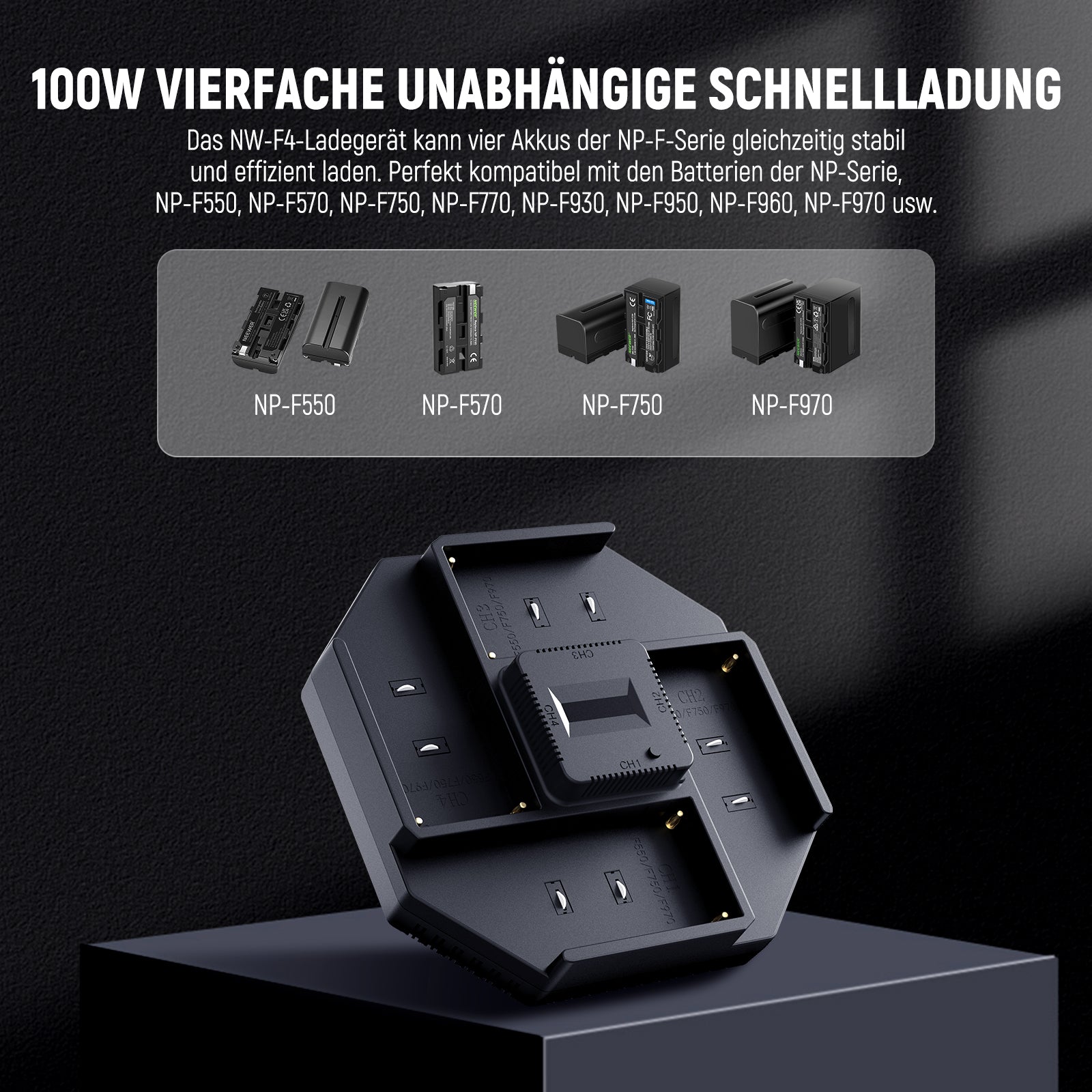 NEEWER NW-F4 4 Kanal Ladegerät für NP-F550 NP-F750 NP-F970 Kameraakku