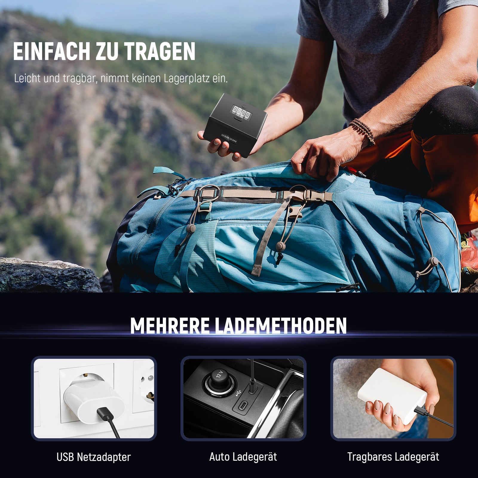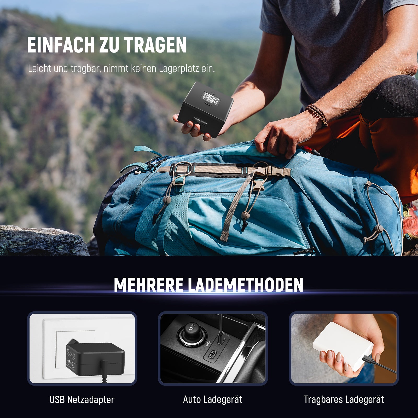 Bequeme Stromlösung für unterwegs- Das tragbare Akkuladegerät NW-ZP4 verfügt über einen USB Typ C Eingang, der leicht an tragbare Ladegeräte, Computer, Autoladegeräte oder andere USB Stromquellen angeschlossen werden kann, um unterwegs bequem Strom zu liefern und Ihre Akkus für kontinuierliche Aufnahmen aufzuladen