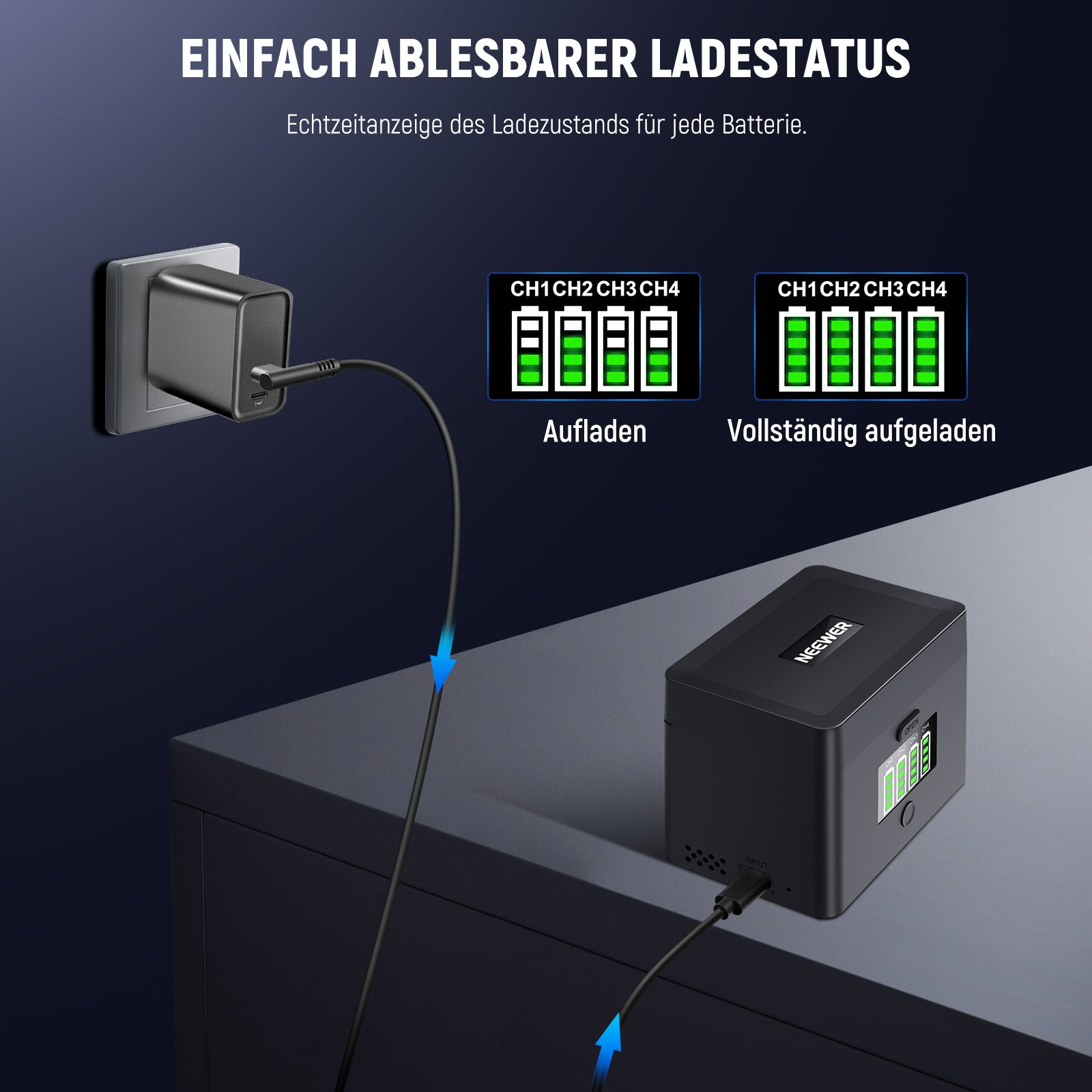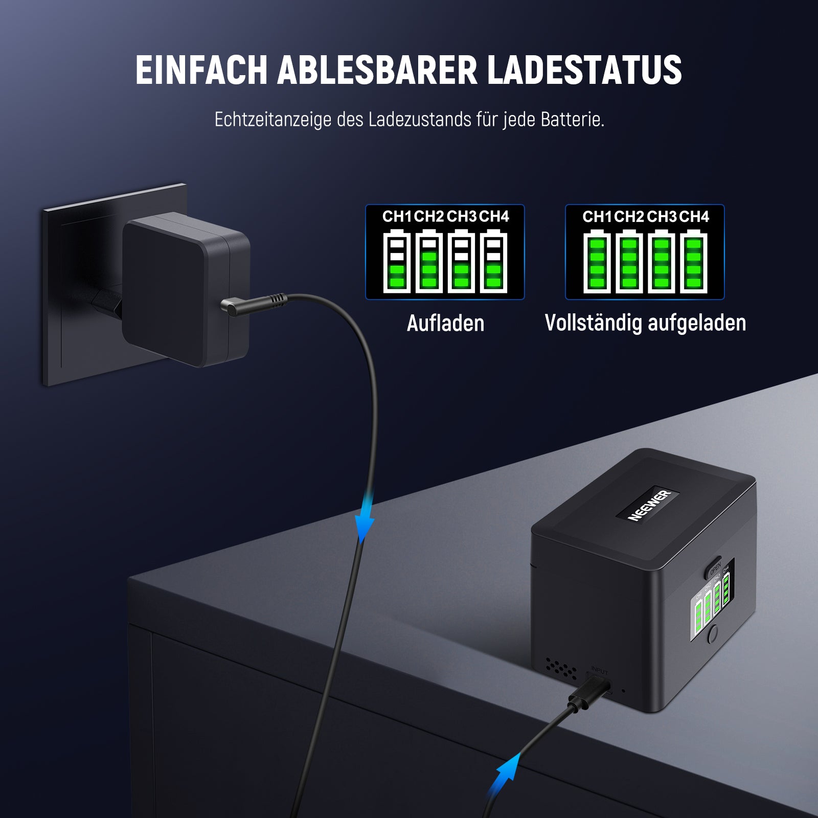 NEEWER NW-ZP4 2 in 1 Vierkanal USB Ladegerät für NP-FZ100 & LP-E6