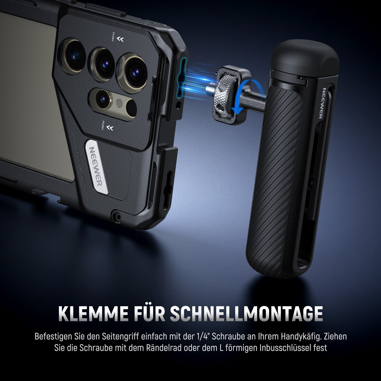 - Nur für NEEWER Telefonkäfig Rig- Dieser Mini Seitengriff ist nur für NEEWER Handykäfig Video Rig Stabilisatoren geeignet, einschließlich PA006 PA011 PA017 PA021 PA022 PA023 PA024 PA042 PA043 PA044 PA088. Hinweis: Nicht kompatibel mit SmallRig Telefonkäfigen