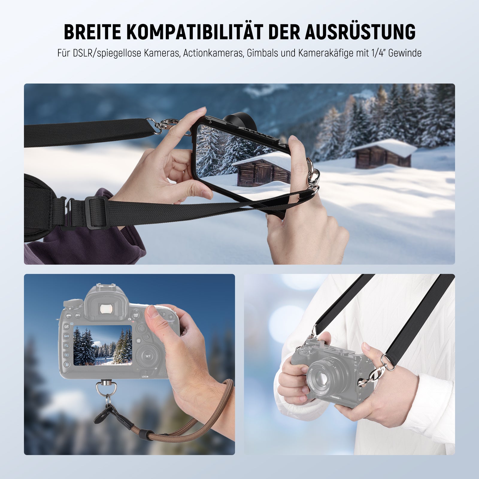 - Breite Kompatibilität der Ausrüstung- Für DSLR/spiegellose Kameras, Action Kameras, Gimbals und Kamerakäfige mit dem 1/4" Gewinde