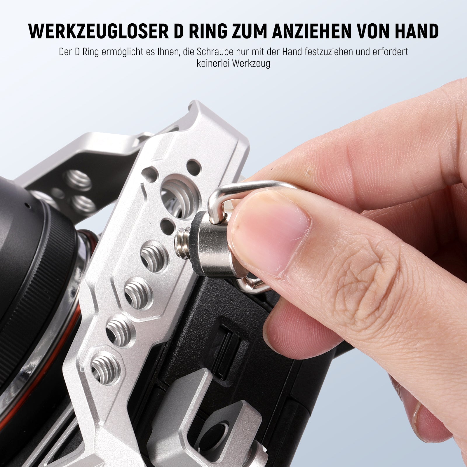 - Werkzeugloses Festziehen des D Rings von Hand- Der D Ring ermöglicht es Ihnen, die Schraube nur mit der Hand festzuziehen und erfordert überhaupt kein Werkzeug