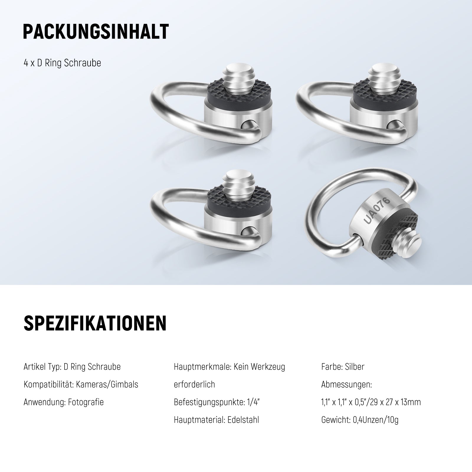 NEEWER UA076 Edelstahl 1/4" D Ring Schraubenset