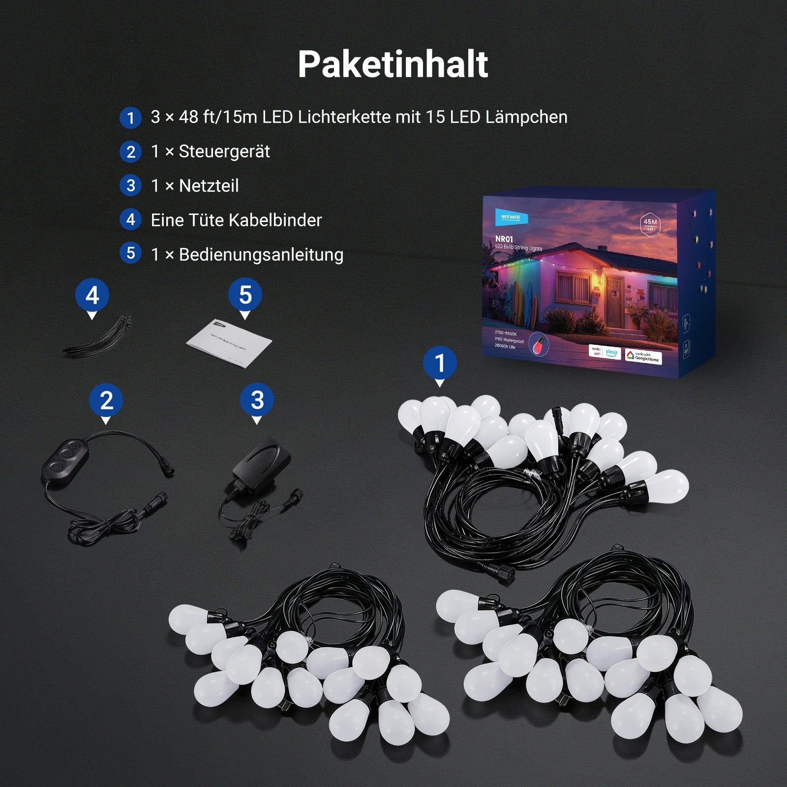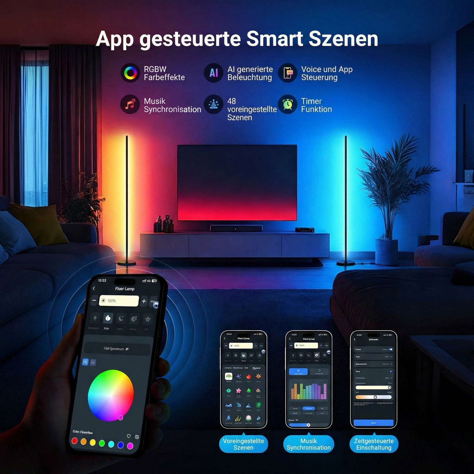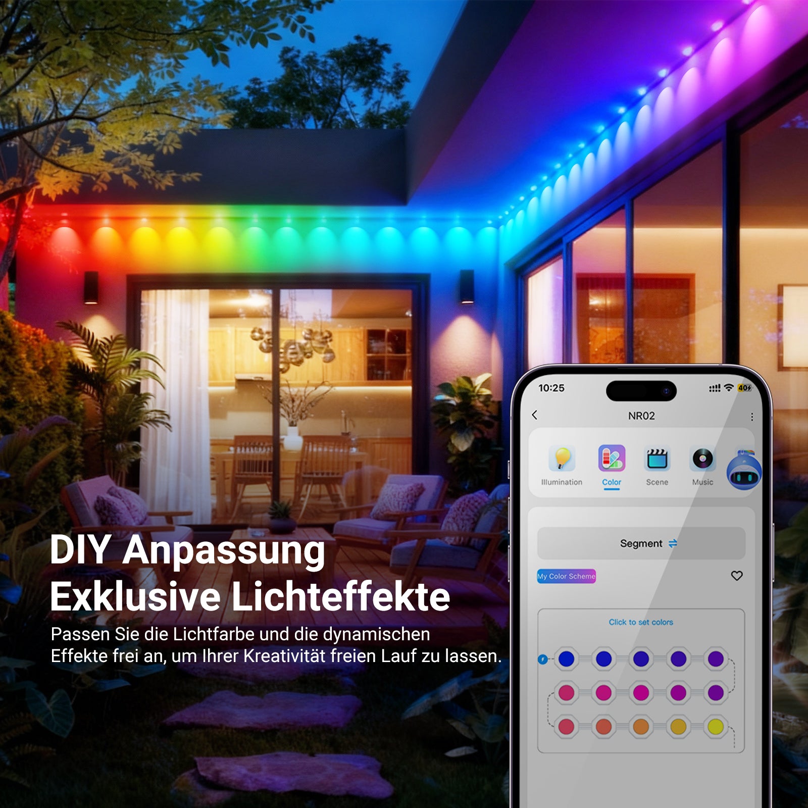 NEEWER bietet intelligente Leuchten wie Eck-Stehlampen, RGB-LED-Lichtstreifen, permanente Außenbeleuchtung und mehr. Angetrieben von der NEEWER Smart AI Lighting Engine erzeugen diese Leuchten KI-basierte Lichteffekte, die sich Ihren Vorlieben anpassen – per Sprachbefehl, Text oder Bild gesteuert. Ob innen oder außen: Diese Beleuchtung passt sich Ihnen an und setzt jeden Raum gekonnt in Szene.