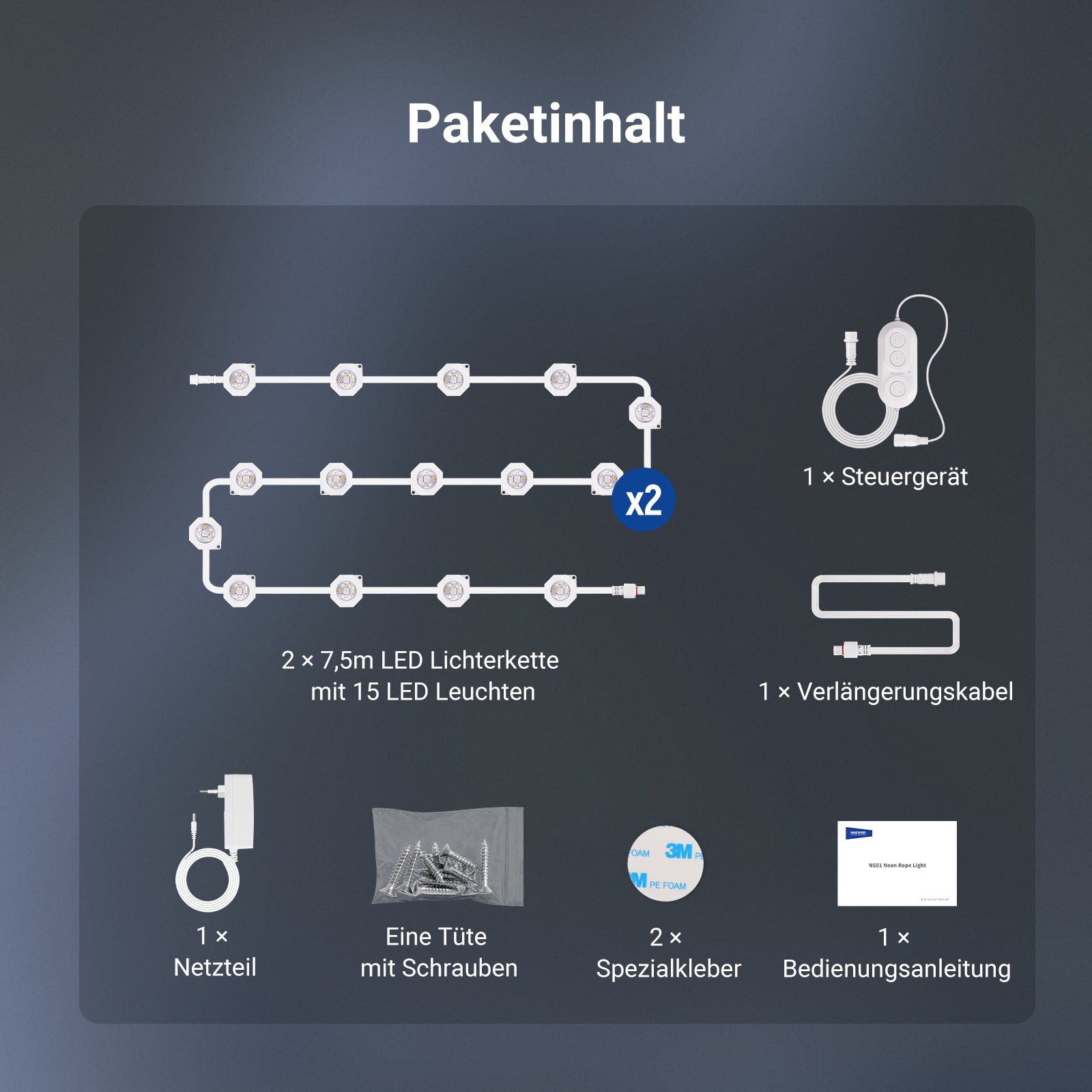• 2 × LED-Lichterkette