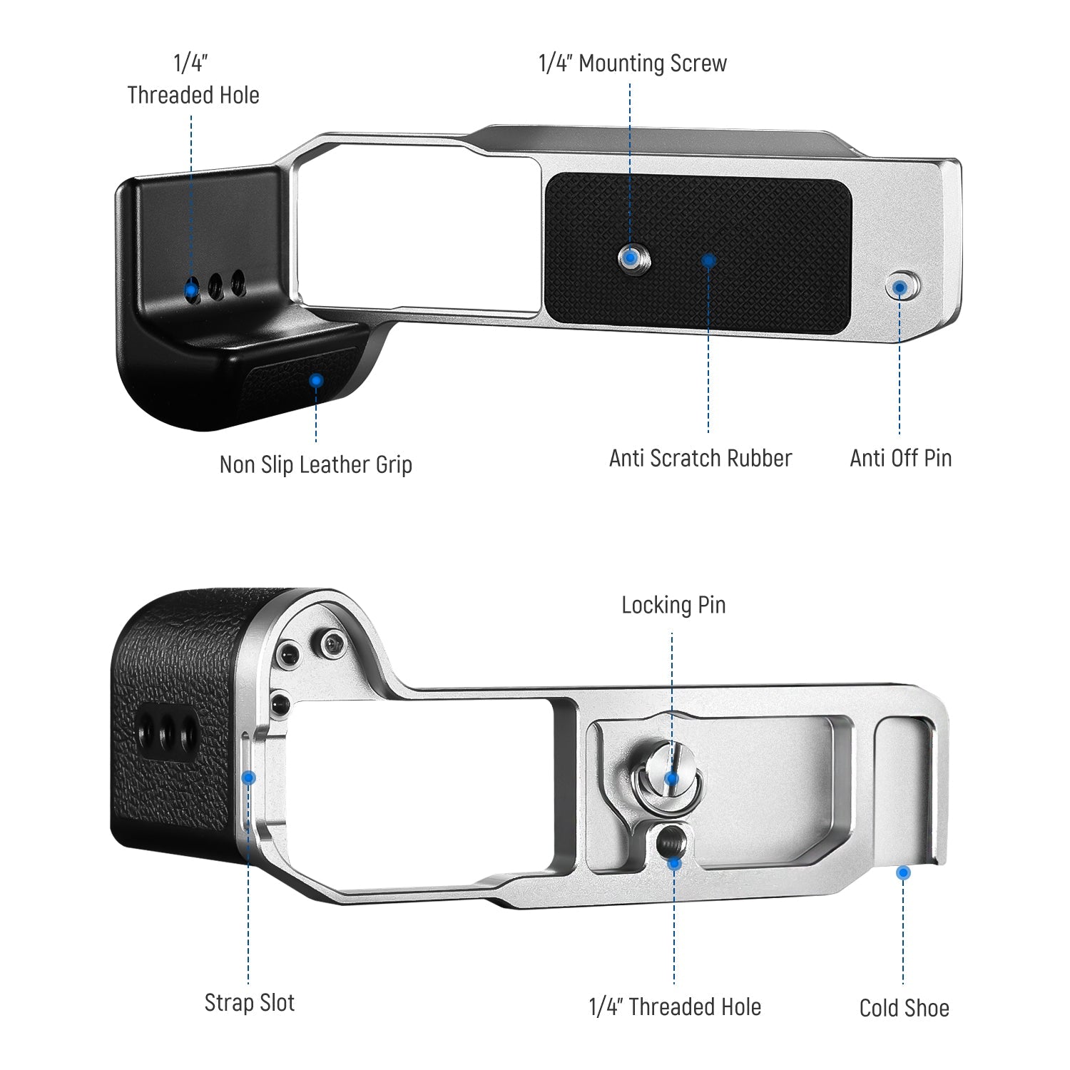 - 【Einfache Zubehörbefestigung】 Der Kameragriff verfügt über eine Blitzschuhhalterung und drei 1/4” 20-Gewindelöcher und ermöglicht Ihnen den Anschluss einer LED-Videoleuchte, eines Mikrofons oder eines Feldmonitors für verbesserte Video- und Fotoqualität
