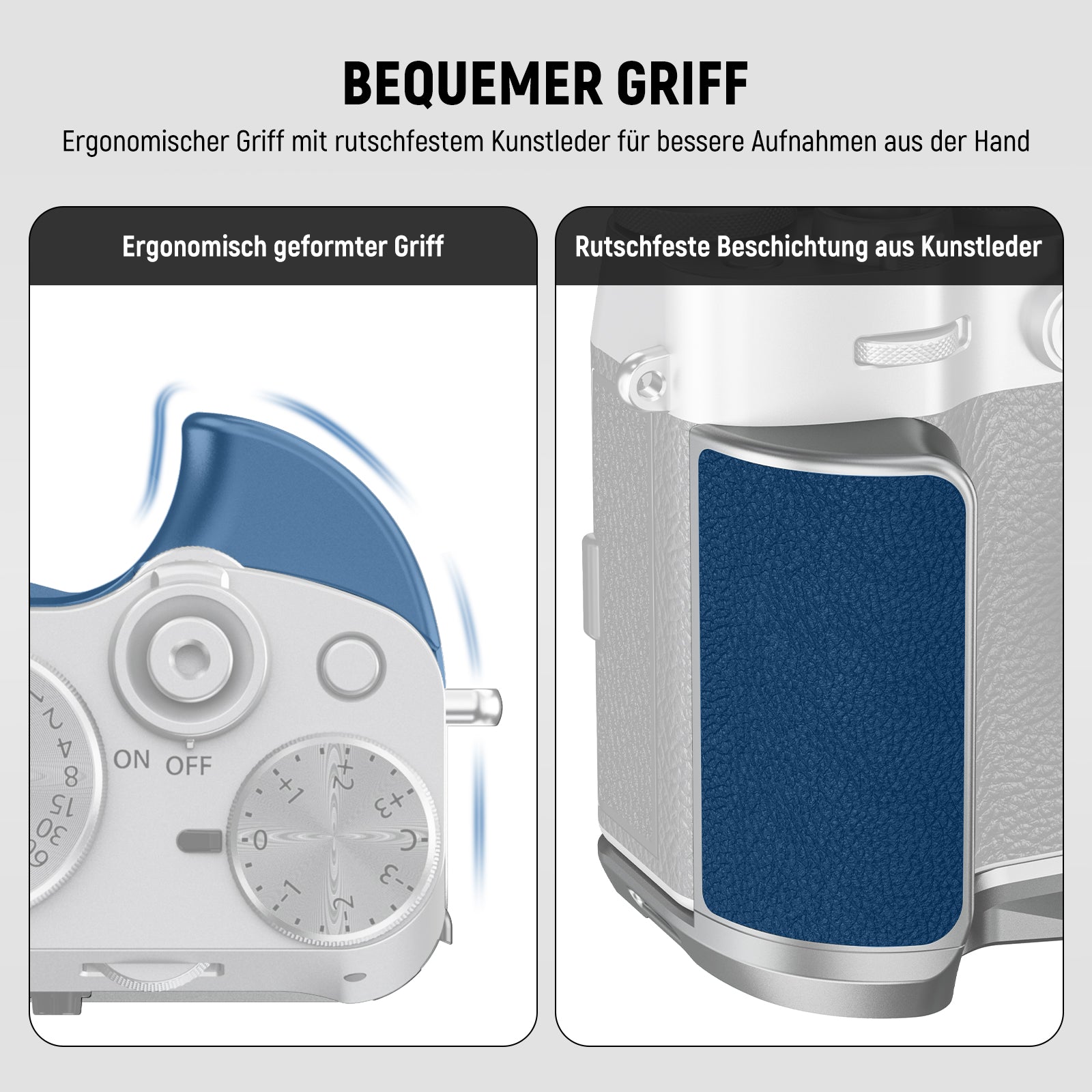 - 【Komfortabler und rutschfester Griff】 Der Griff mit einer rutschfesten Kunstlederbeschichtung kann effektiv verhindern, dass die Kamera aus der Hand rutscht und den Komfort und die Stabilität beim Fotografieren aus der Hand verbessern