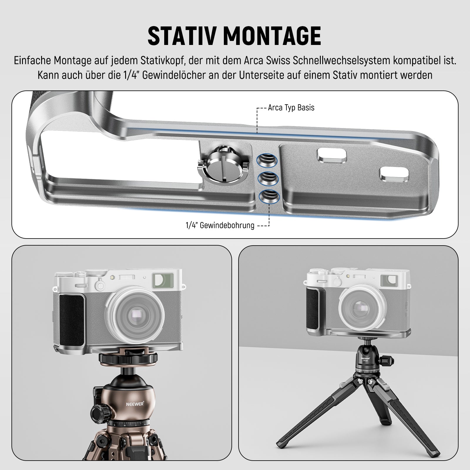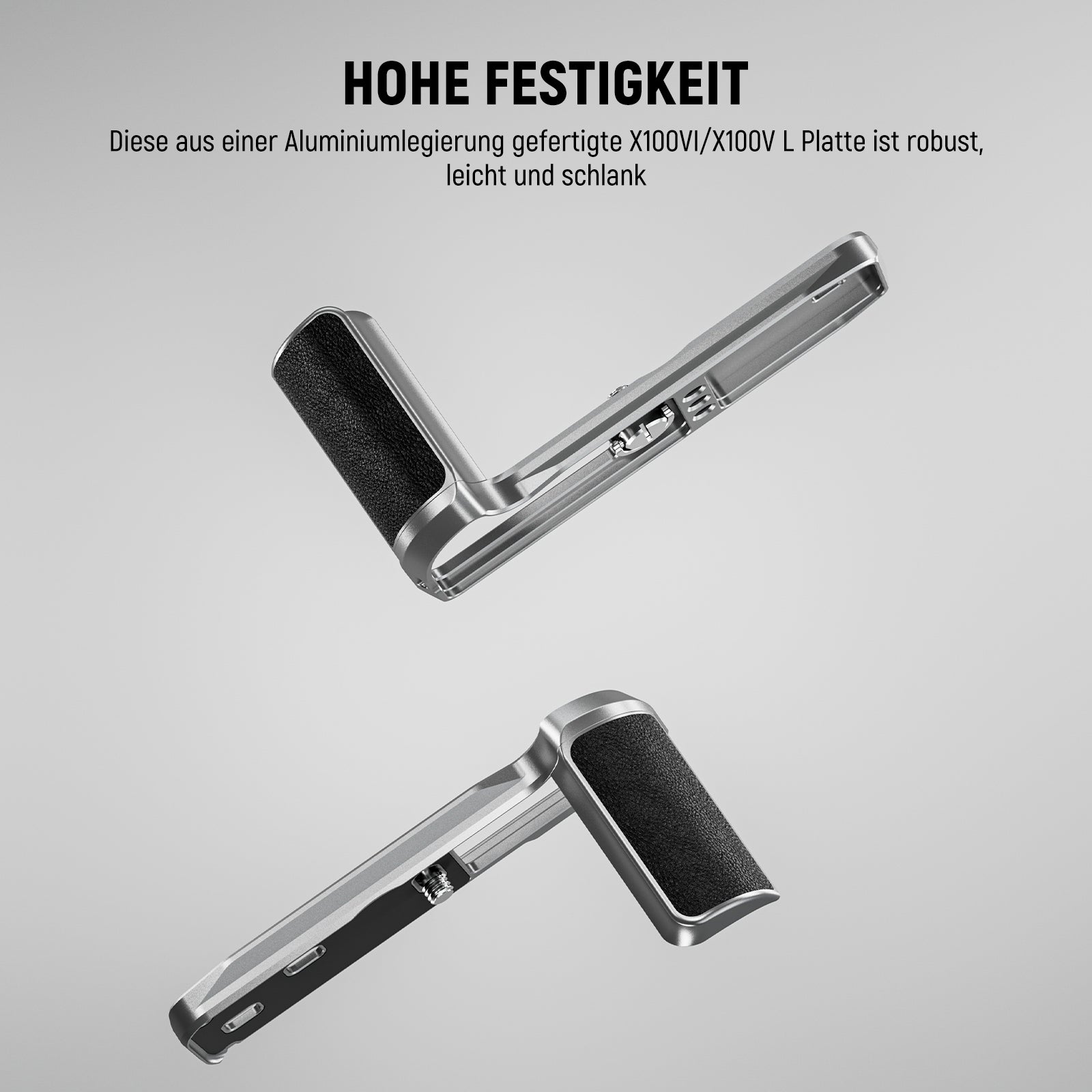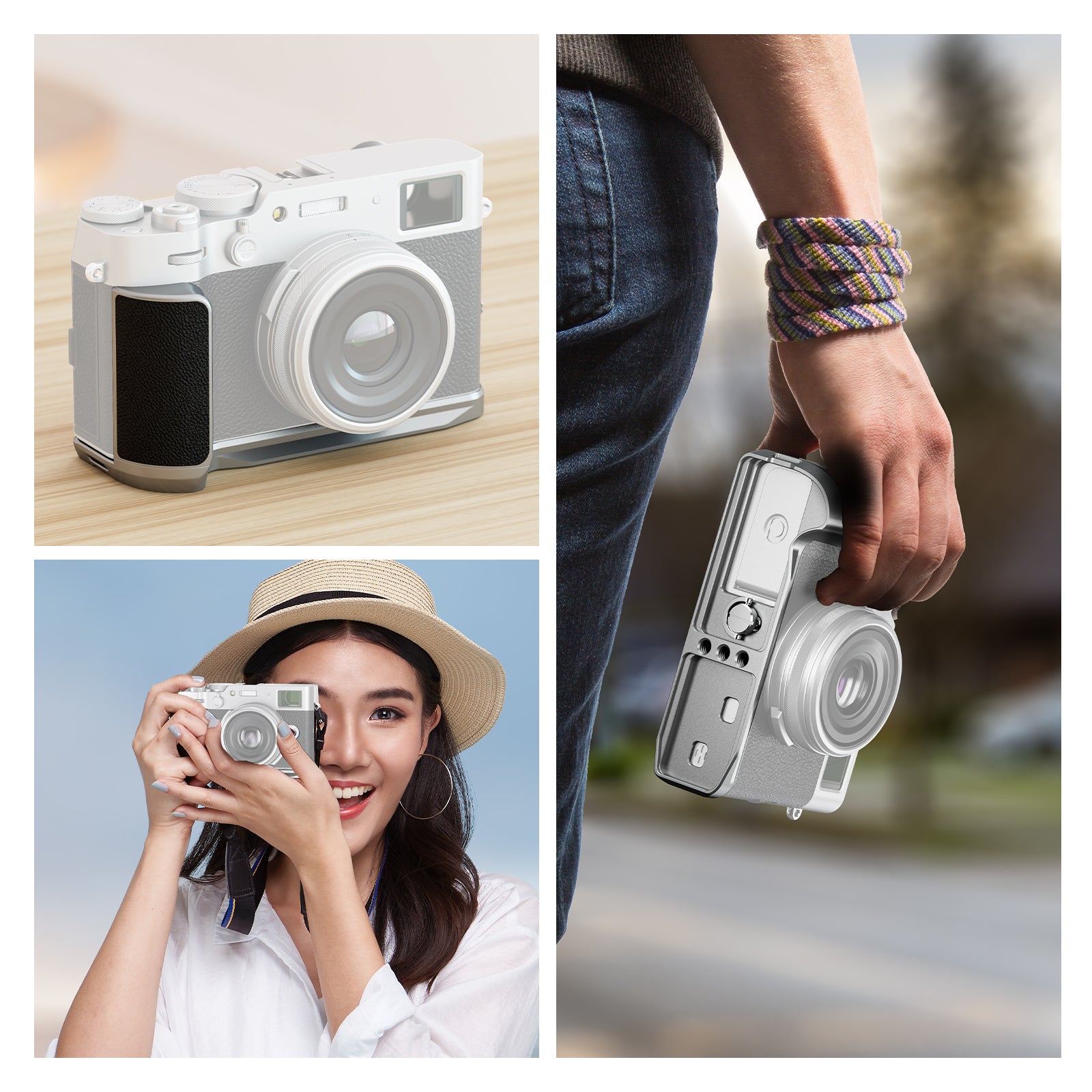 - 【Für X100VI und X100V Kamera】Diese mit Fujifilm X100VI und X100V kompatible Montageplatte mit L förmigem Handgriff lässt sich einfach mit einer 1/4" Schraube an Ihrer Kamera befestigen und verbessert Handheld Fotografie, Vlogging und Filmaufnahmen