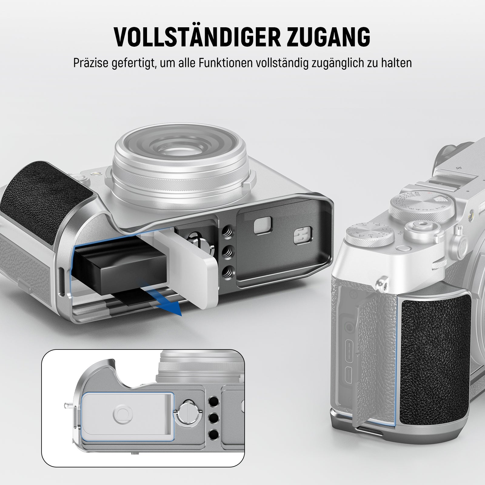 - 【Hohe Festigkeit, schlank und dünn】 Diese aus einer Aluminiumlegierung gefertigte X100VI/X100V L Plate ist robust, leicht und schlank. Die formschlüssige Bracket gewährleistet vollen Zugang zum Batteriefach und bewahrt den Vintage Stil der Kamera